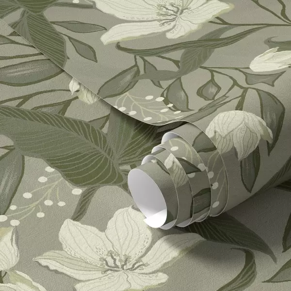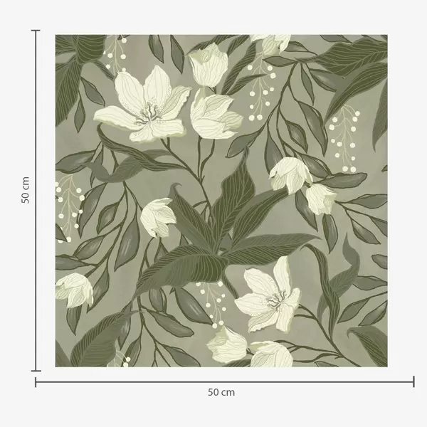 Tapet Crinele palide și frunzele pe fond gri-măsliniu Nr. a00854