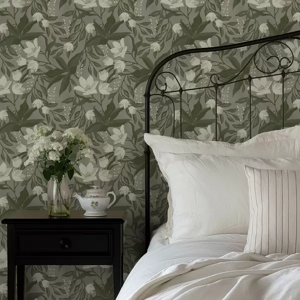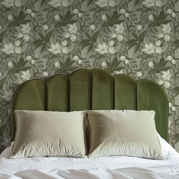 Tapet Crinele palide și frunzele pe fond gri-măsliniu Nr. a00854