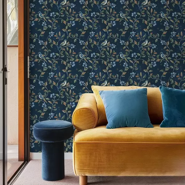 Tapet Sâni pe ramuri, fundal albastru nocturn cu scântei Nr. a00858