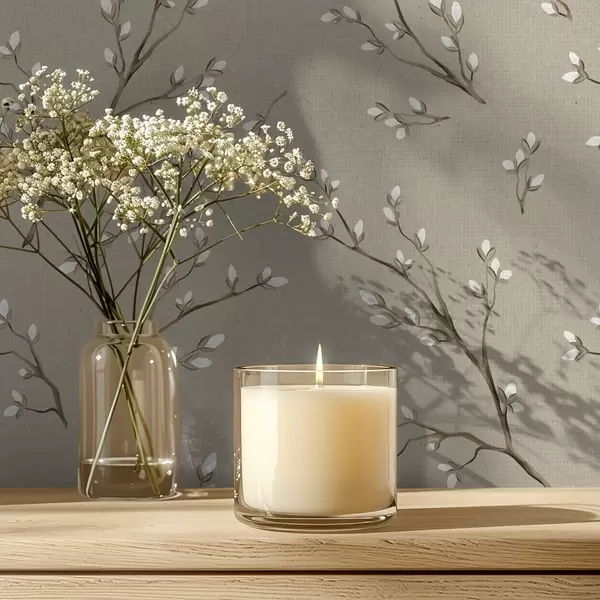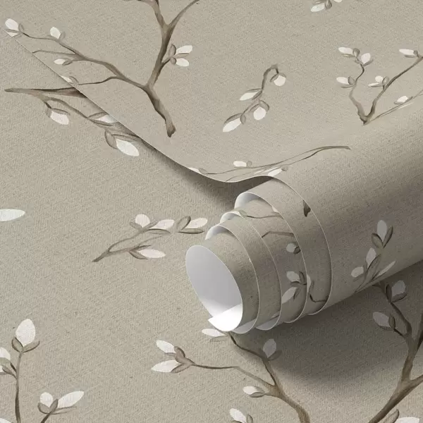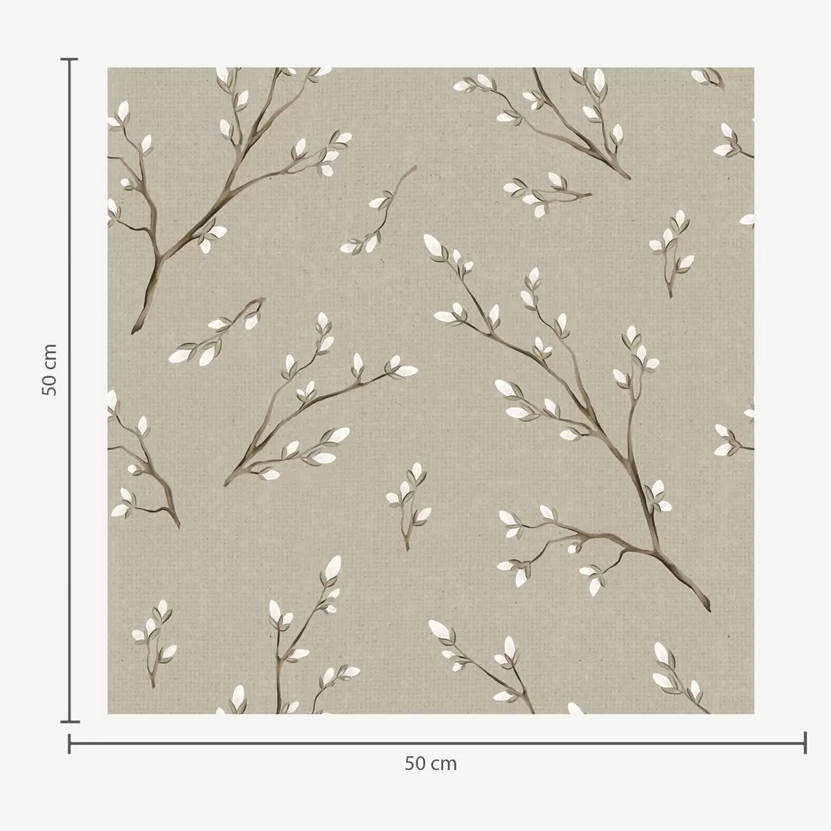 Tapet Crenguțe cu muguri albi pe fundal de culoare gri-bej Nr. a00861