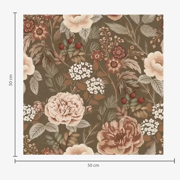 Tapet Trandafiri calzi și fructe de pădure pe fond maro Nr. a00868