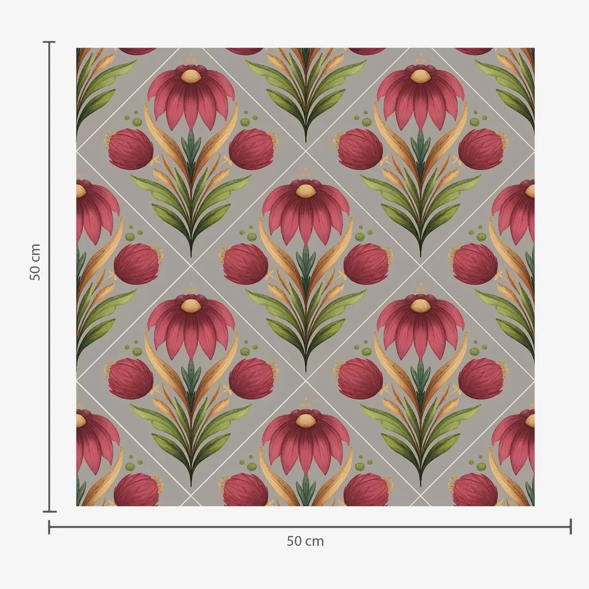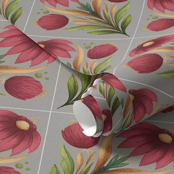 Tapet Ornament floral simetric pe fond gri cu diagonale Nr. a00869