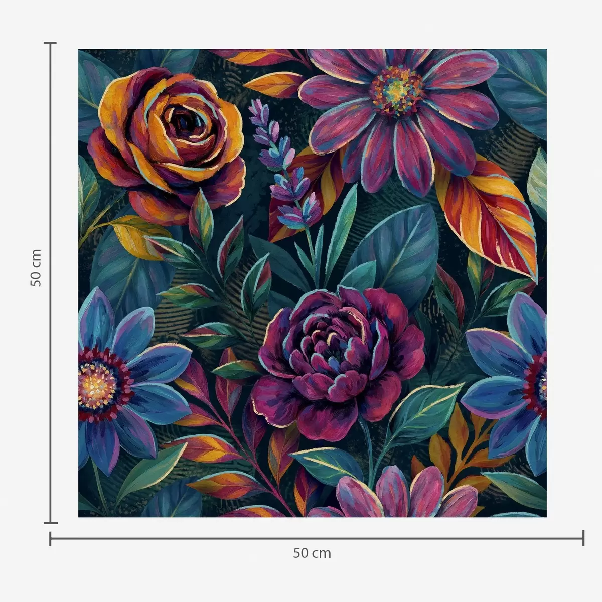 Tapet Flori vibrante în nuanțe de bijuterii pe fond albastru închis Nr. a00871
