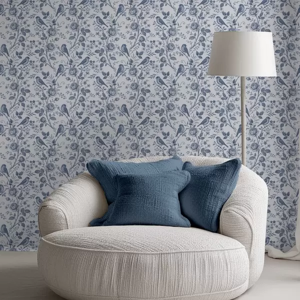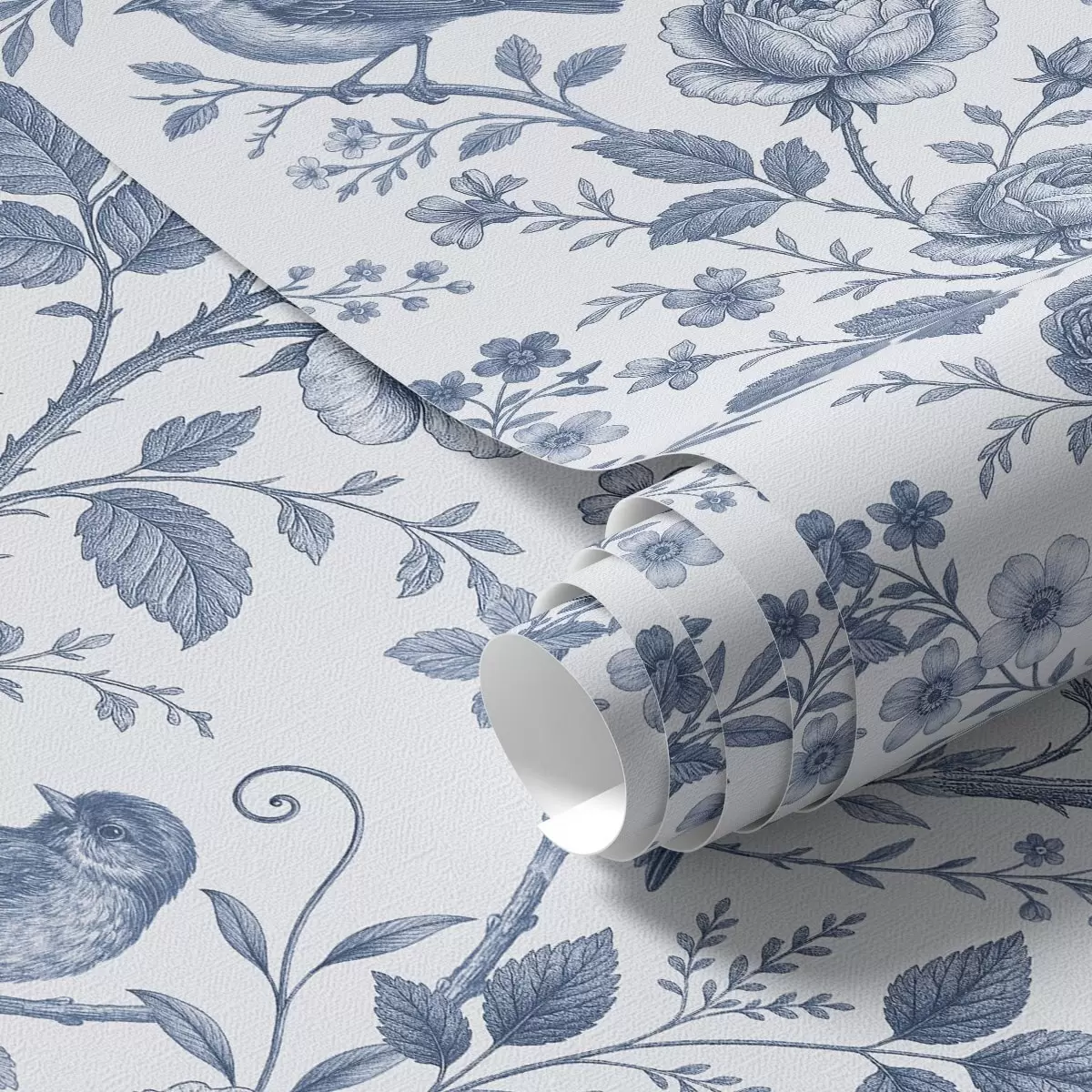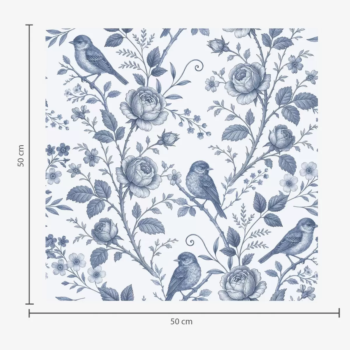 Tapet Păsări și trandafiri albastri pe fond alb Nr. a00873