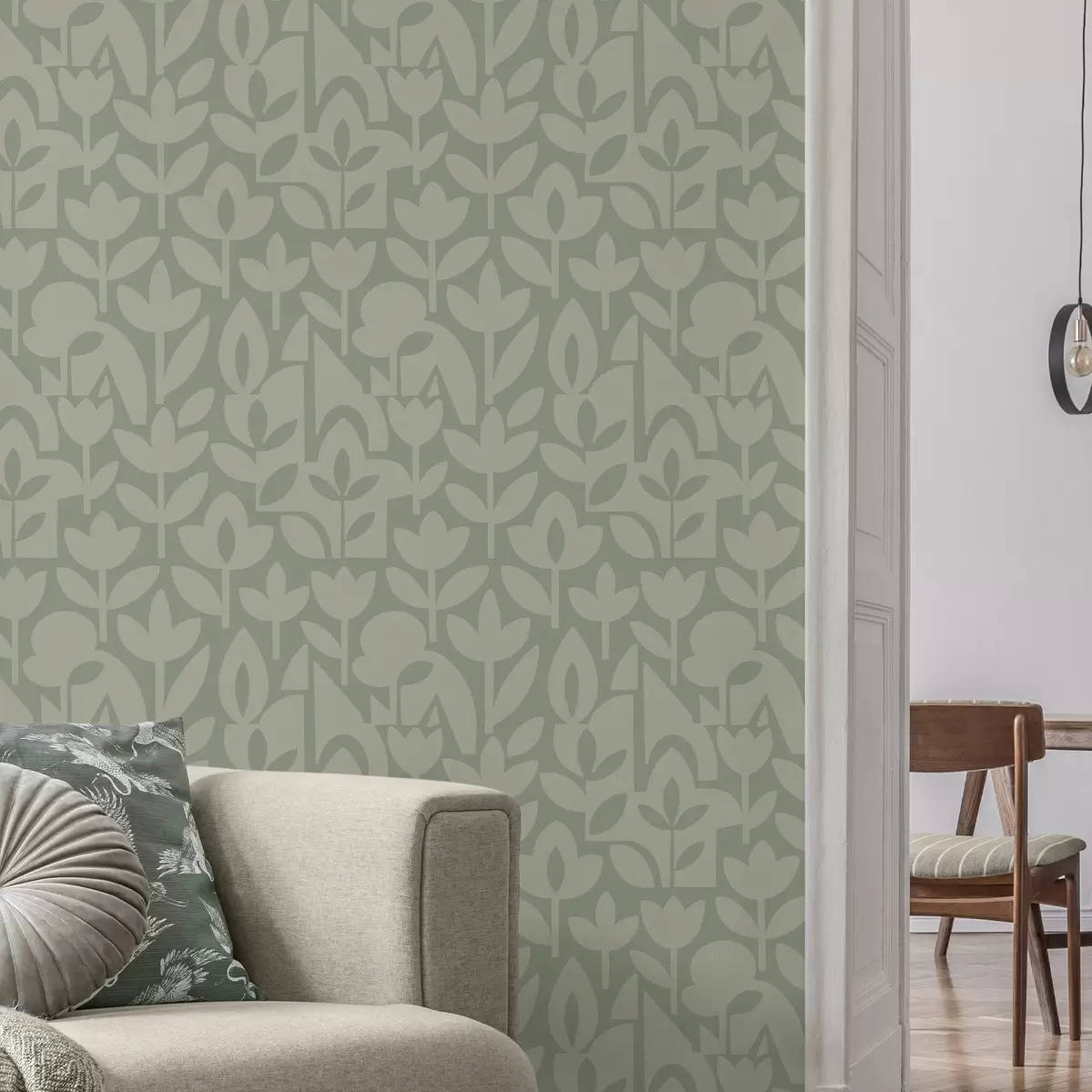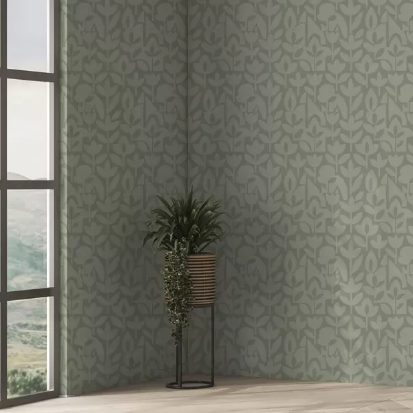 Tapet Siluete florale geometrice în nuanțe delicate de salvie Nr. a00875v1