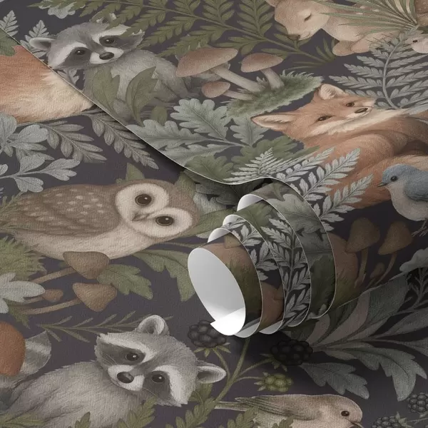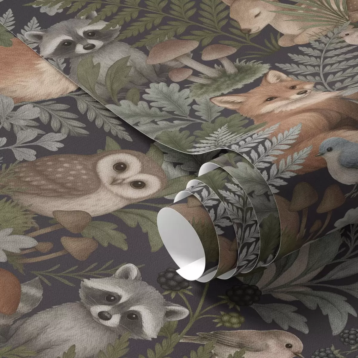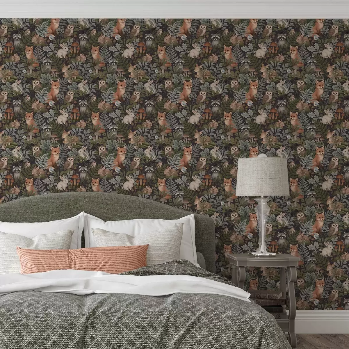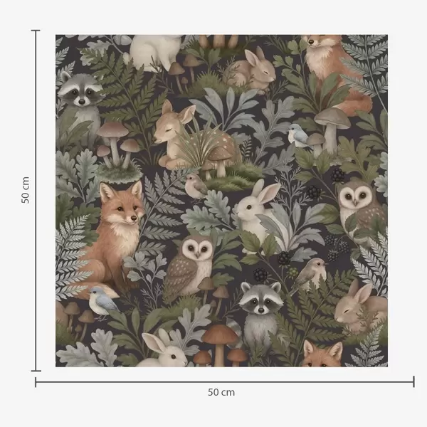 Tapet Animale din pădure și ferigi pe cărbune intens Nr. a00880