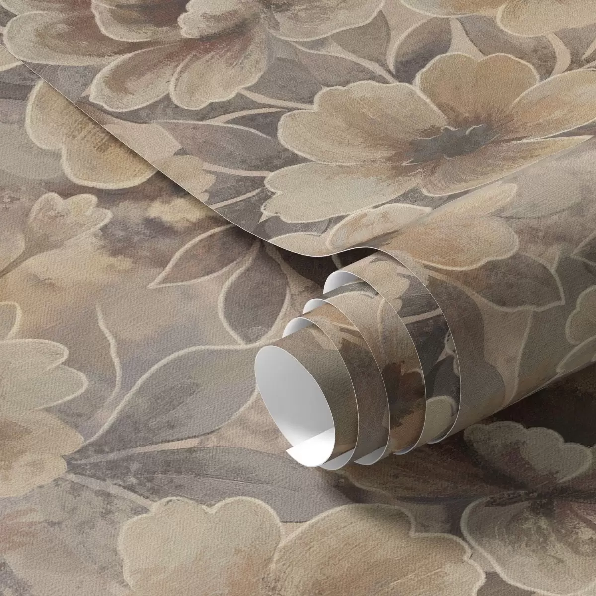 Tapet Flori picturale de culoare bej pe un fundal abstract fumuriu Nr. a00884