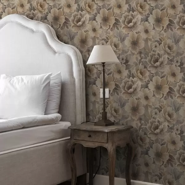 Tapet Flori picturale de culoare bej pe un fundal abstract fumuriu Nr. a00884