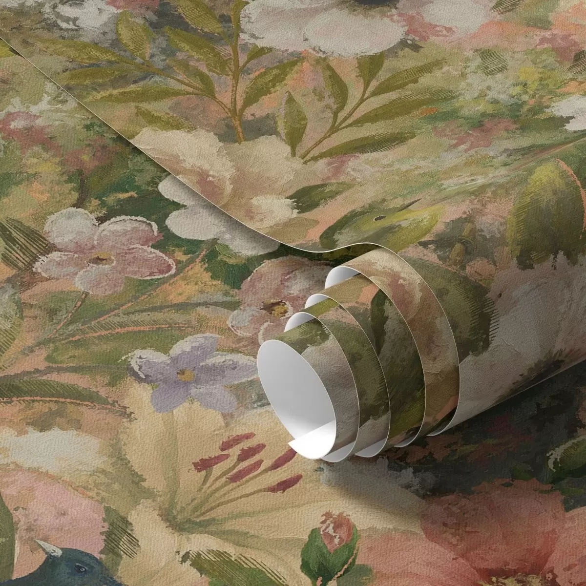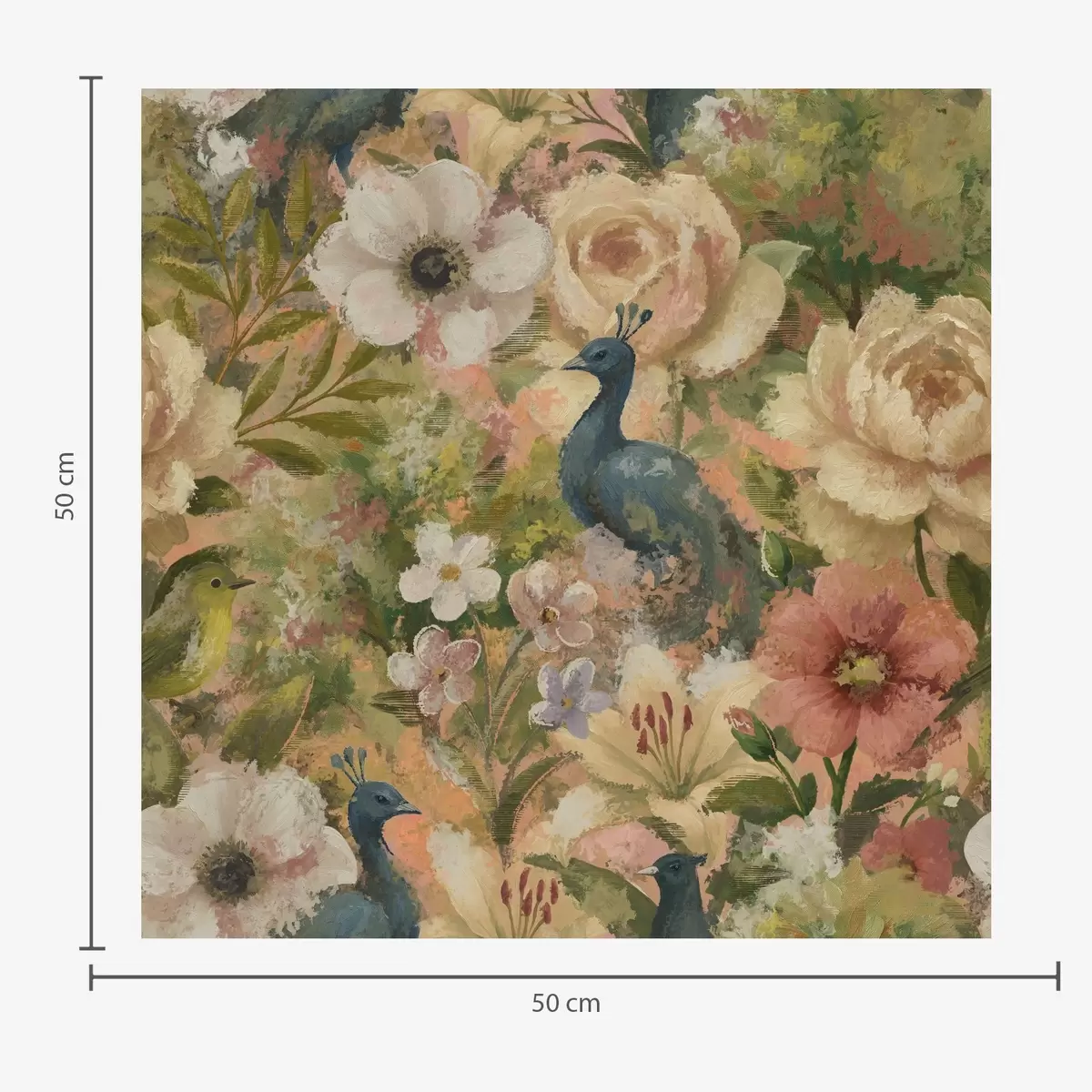Tapet Grădină picturală cu păuni și flori mari Nr. a00885