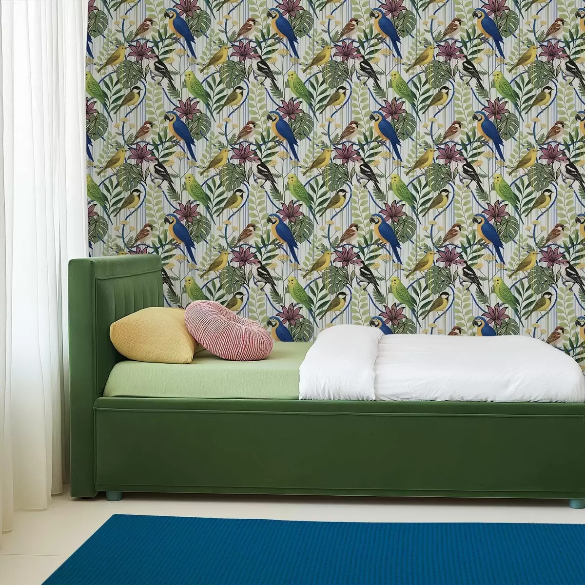 Tapet Păsări exotice strălucitoare printre vegetația tropicală Nr. a00887