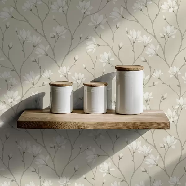 Tapet Magnolii ușoare pe ramuri subțiri de culoare bej Nr. a00890