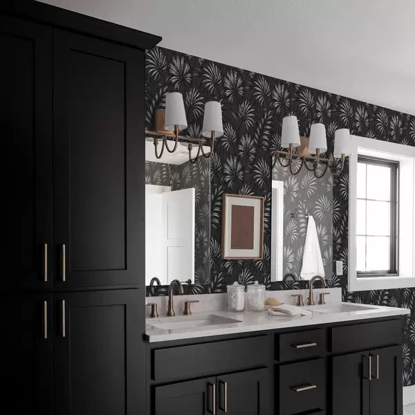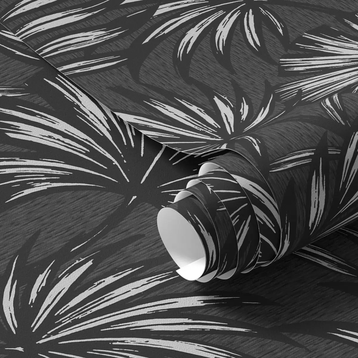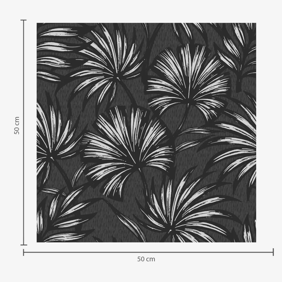 Tapet Frunze de palmier alb-negru pe fundal întunecat Nr. a00891