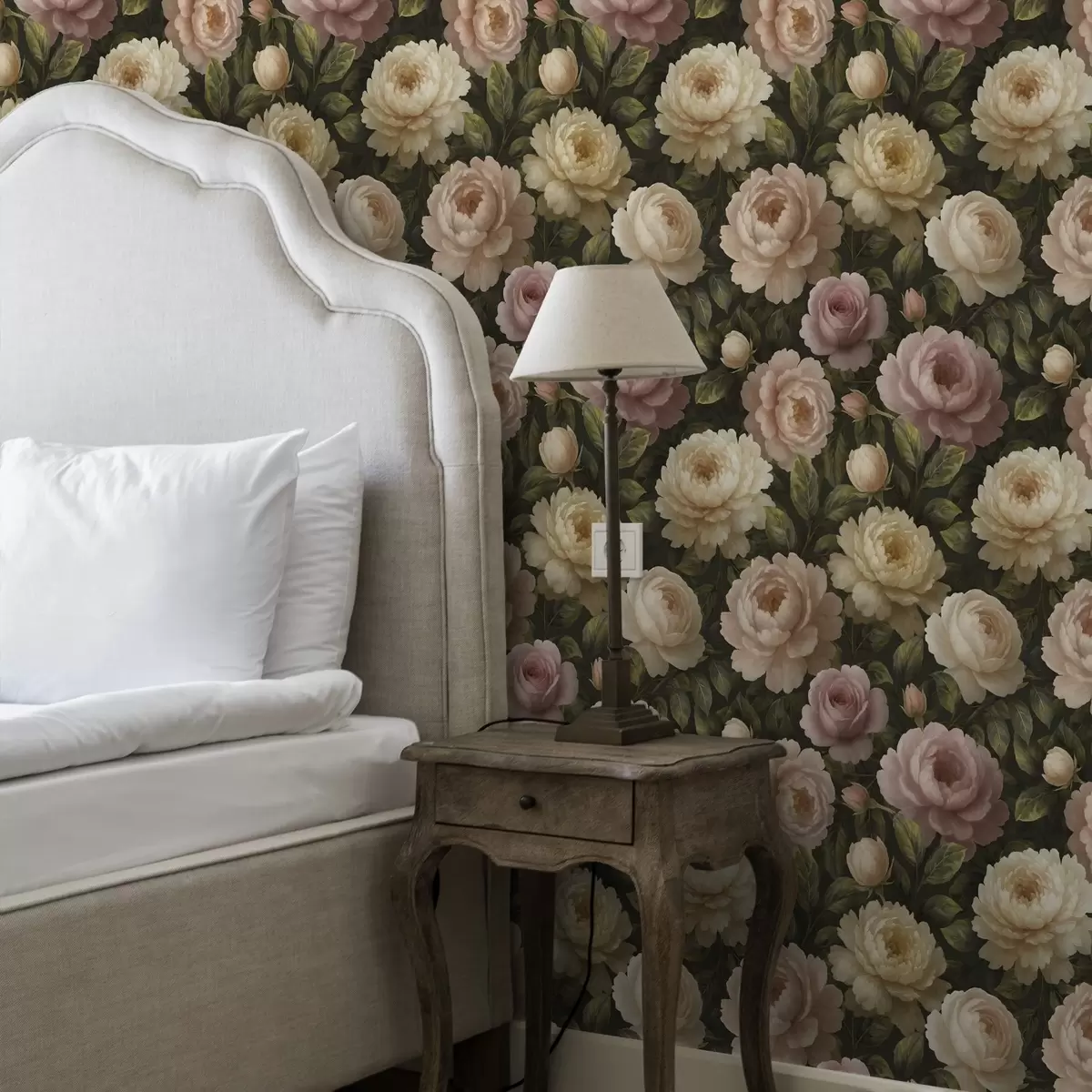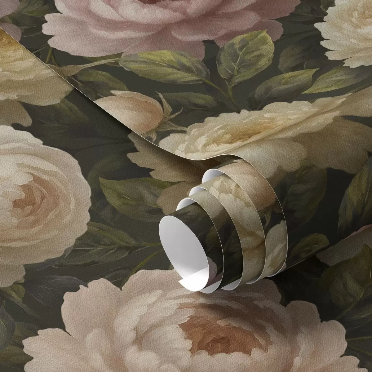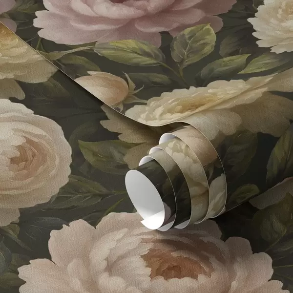 Tapet Bujori romantici pe un fundal botanic întunecat Nr. a00893
