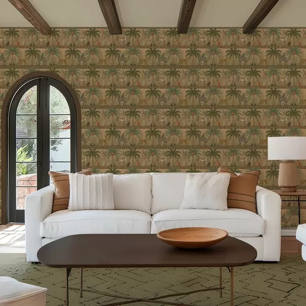 Tapet Animale decorative din savană între palmieri și borduri Nr. a00898
