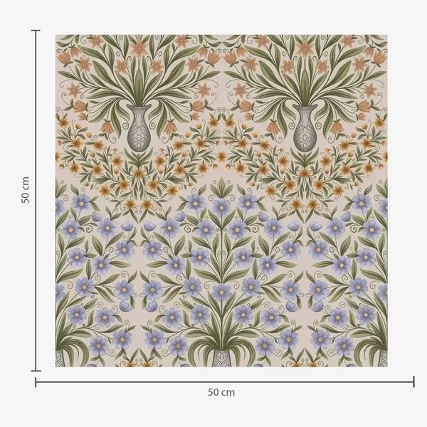 Tapet Vaze populare cu flori albastre și frunze de măslin pe fond roz Nr. a00900