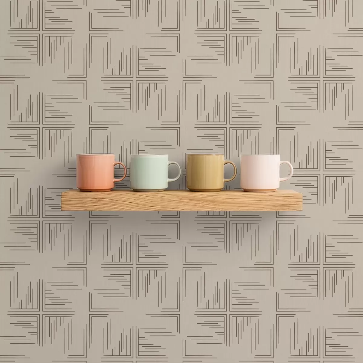 Tapet Blocuri de colț din cacao decalate, cu accente de linii împrăștiate, bej Nr. a00912