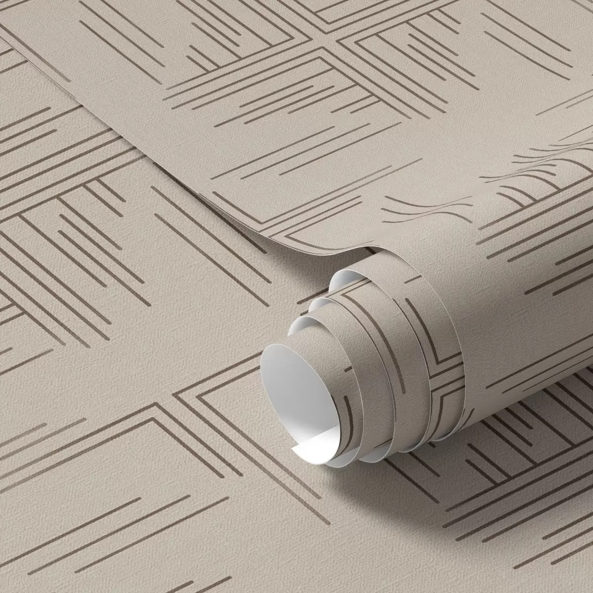 Tapet Blocuri de colț din cacao decalate, cu accente de linii împrăștiate, bej Nr. a00912