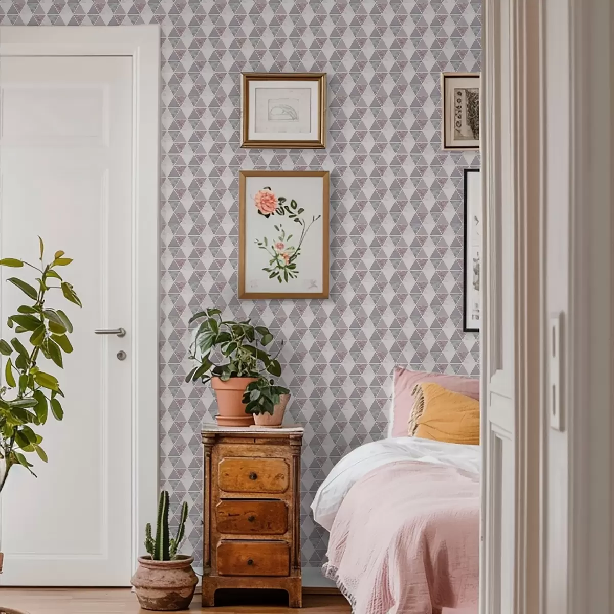 Tapet Triunghiuri moi în tonuri de gri-roz și pudră Nr. a00918