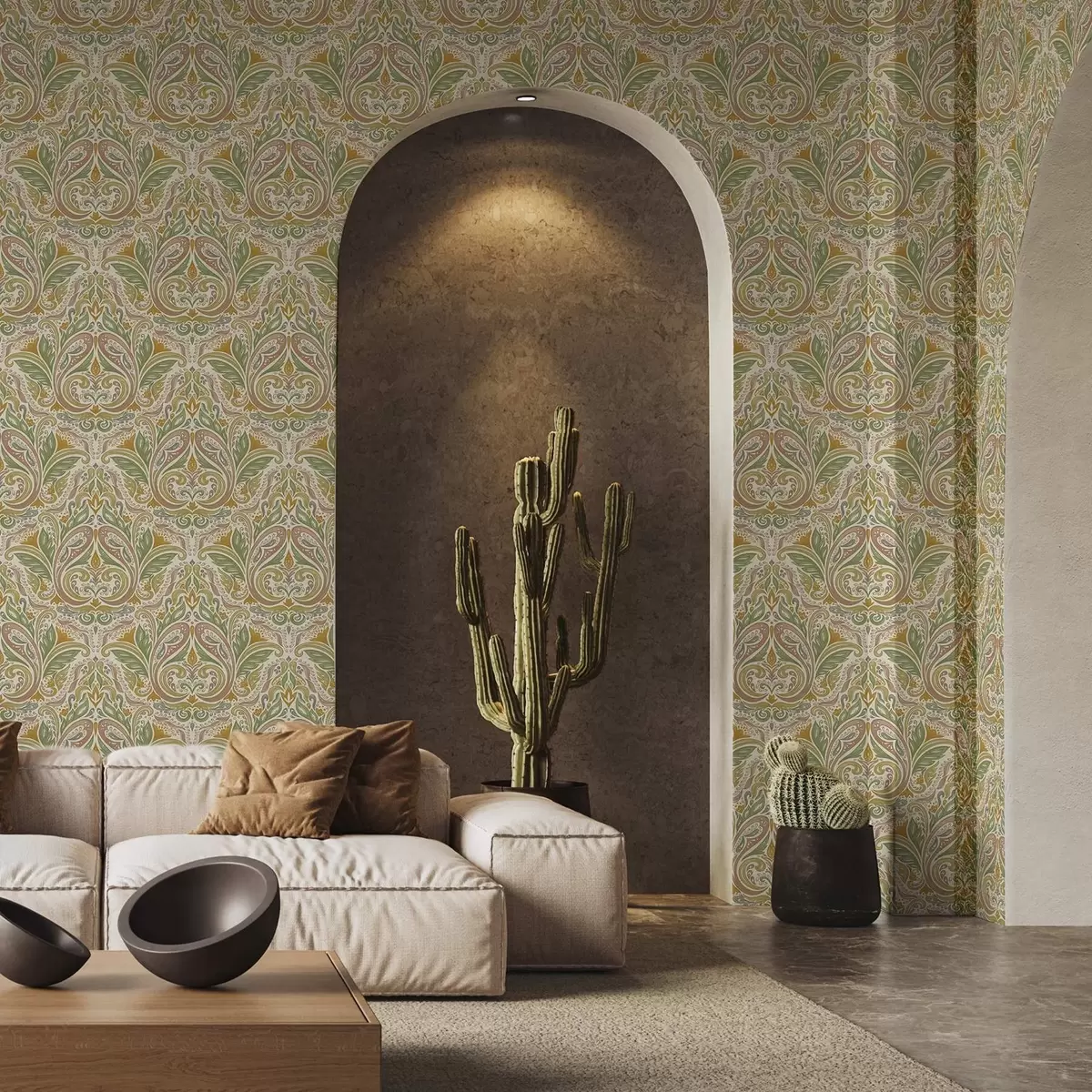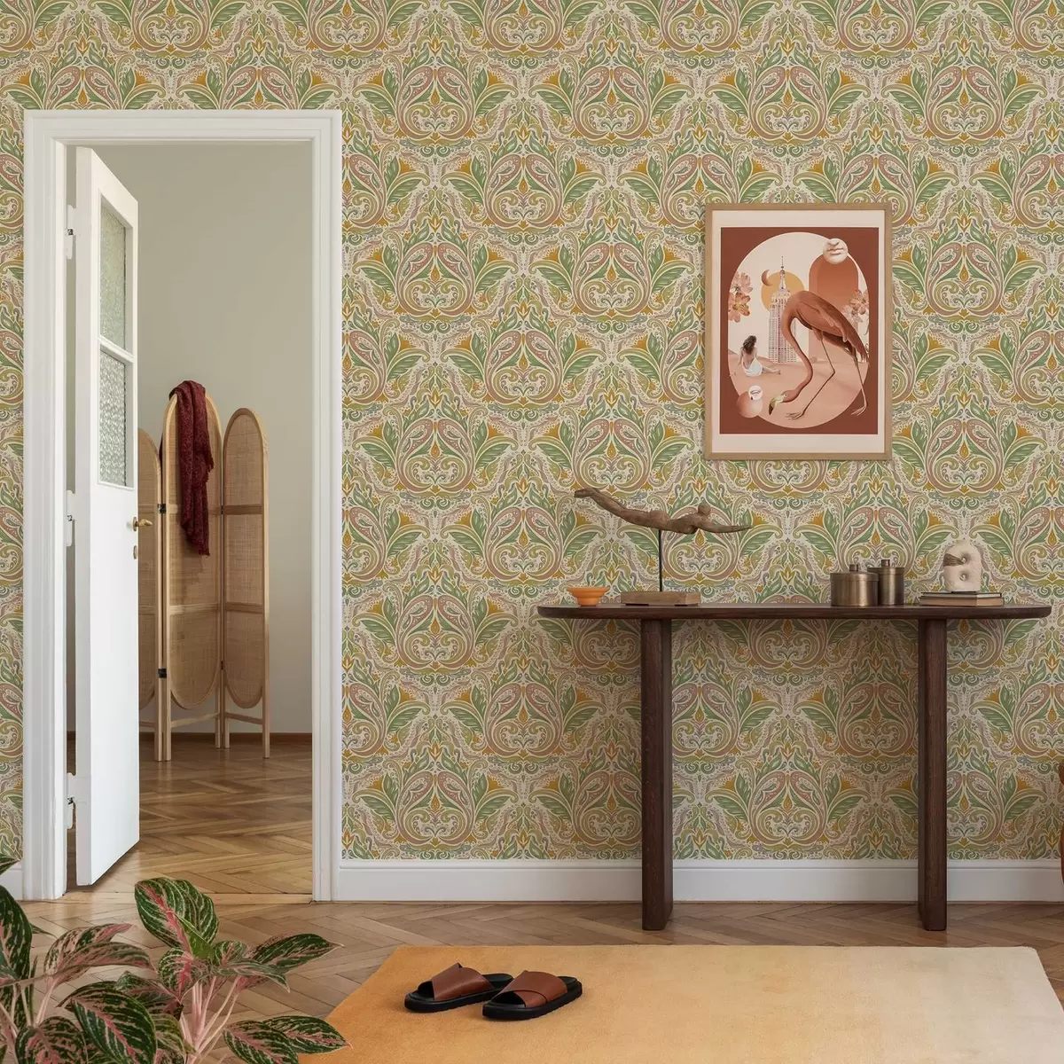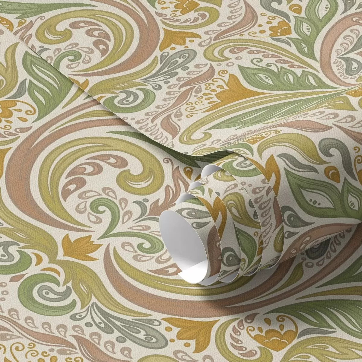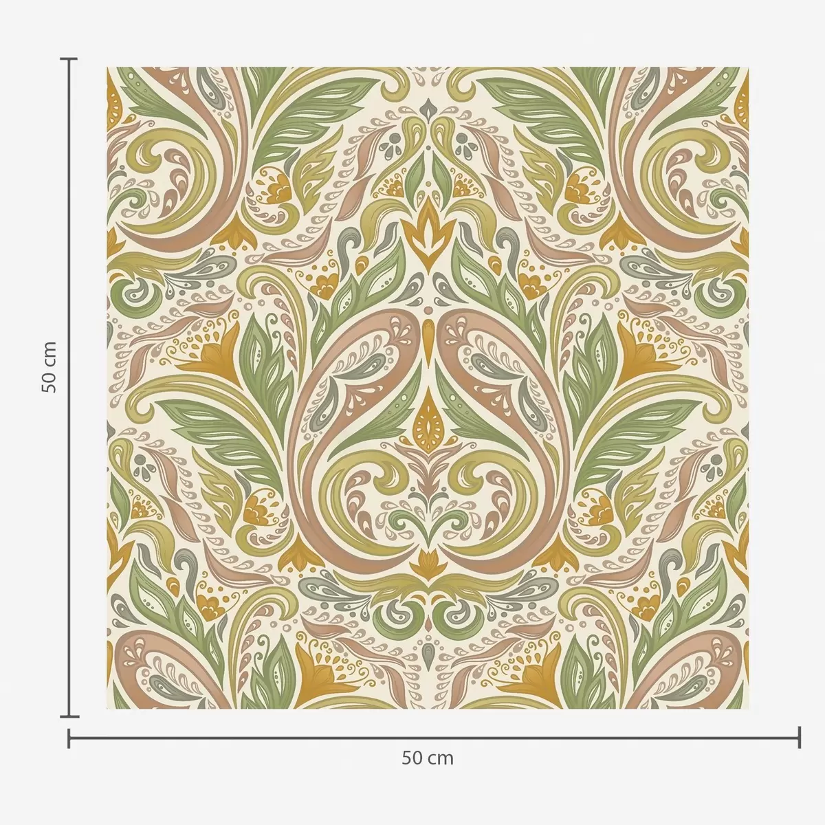 Tapet Ornamente cu frunze în spirală în tonuri de verde și teracotă Nr. a00927v1