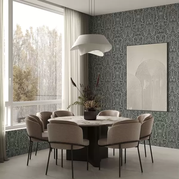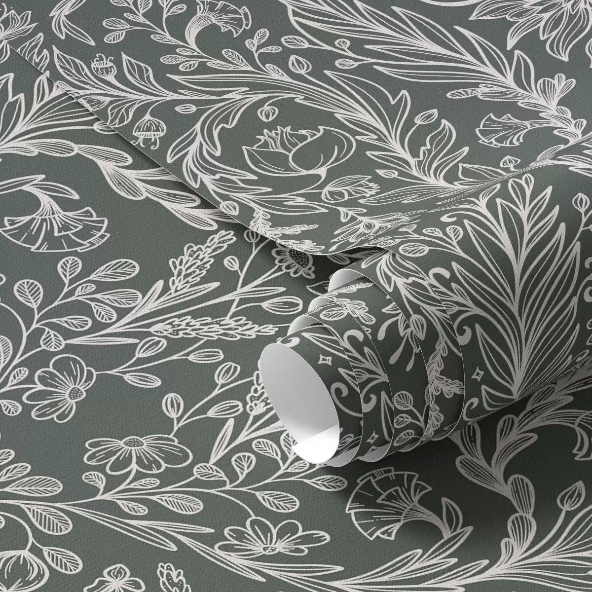 Tapet Model floral liniar pe fond verde închis Nr. a00929