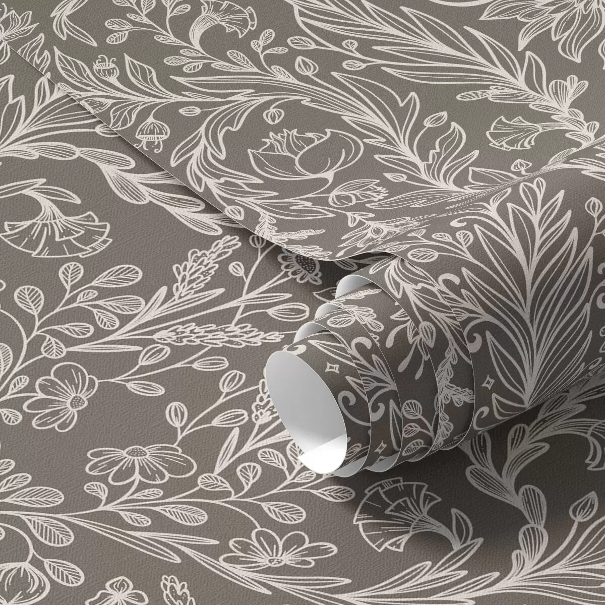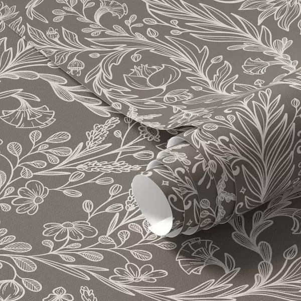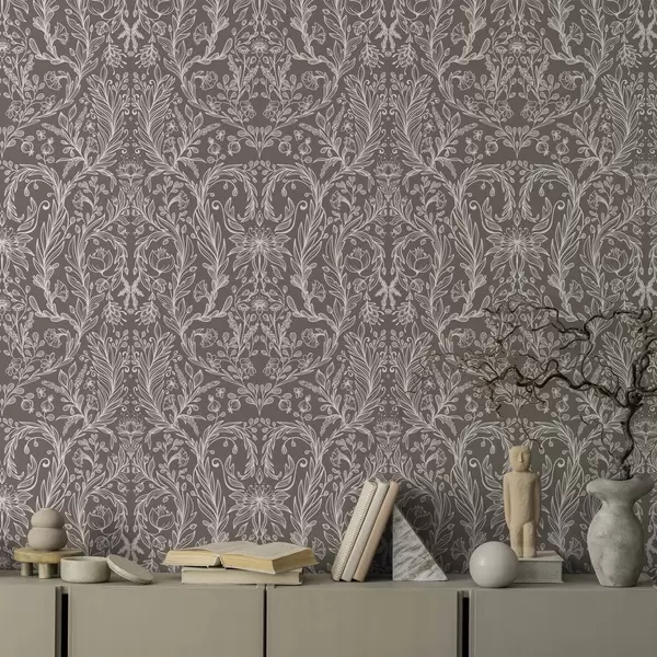 Tapet Model botanic monocromatic pe fond maro cald Nr. a00929v2