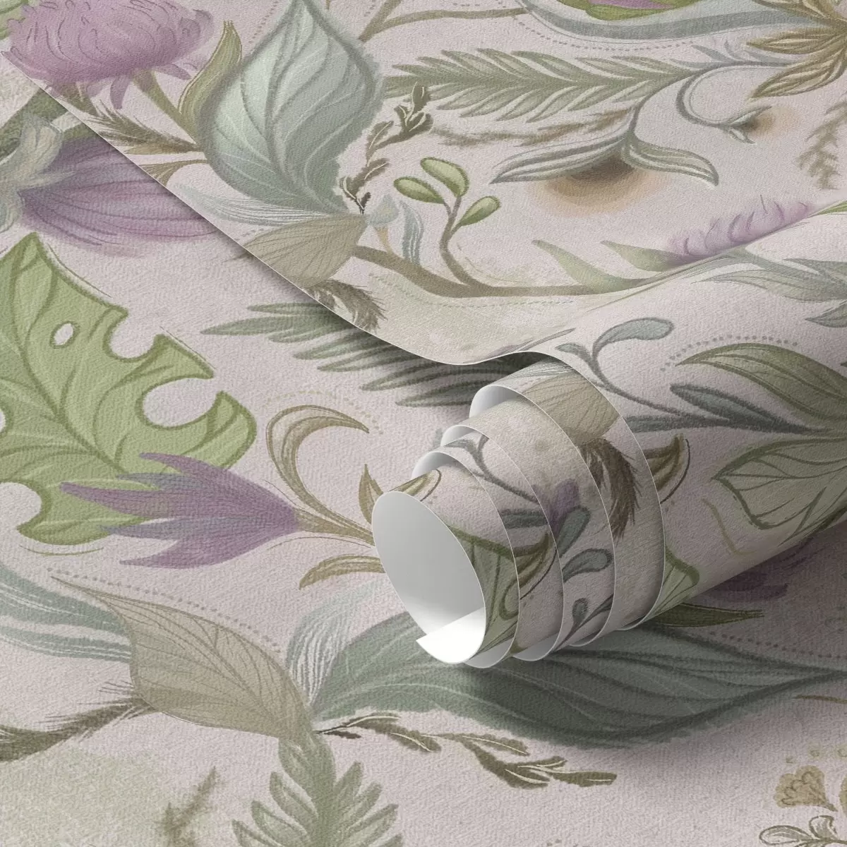 Tapet Flori sălbatice de liliac și frunze pe un fundal pudrat Nr. a00930v3