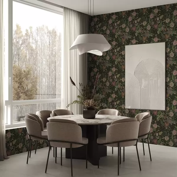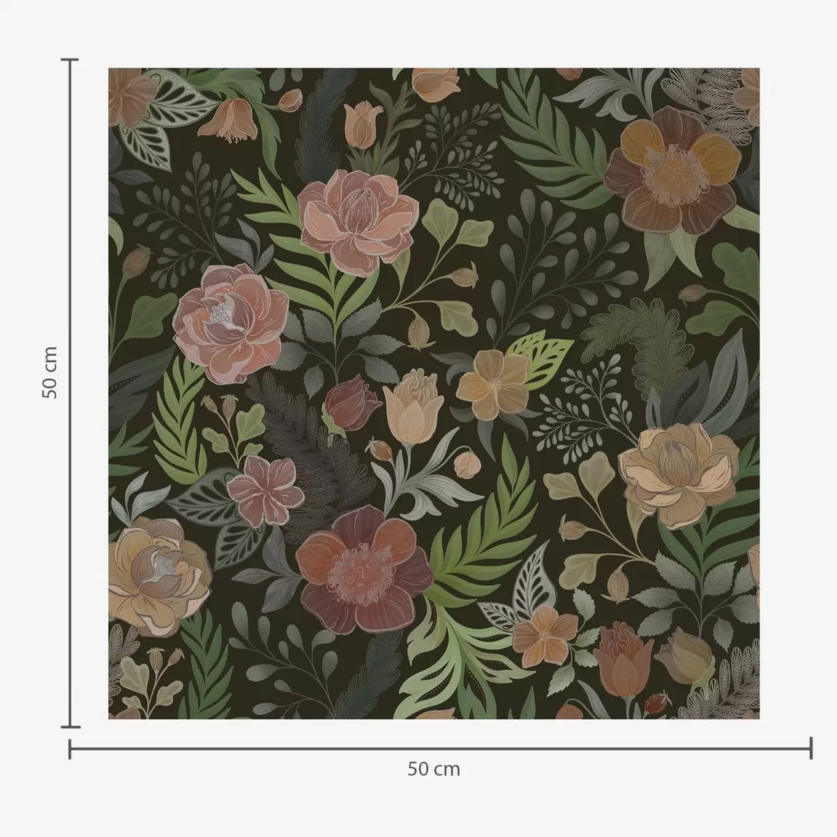 Tapet Flori bogate și verdeață pe un fundal întunecat intens Nr. a00932