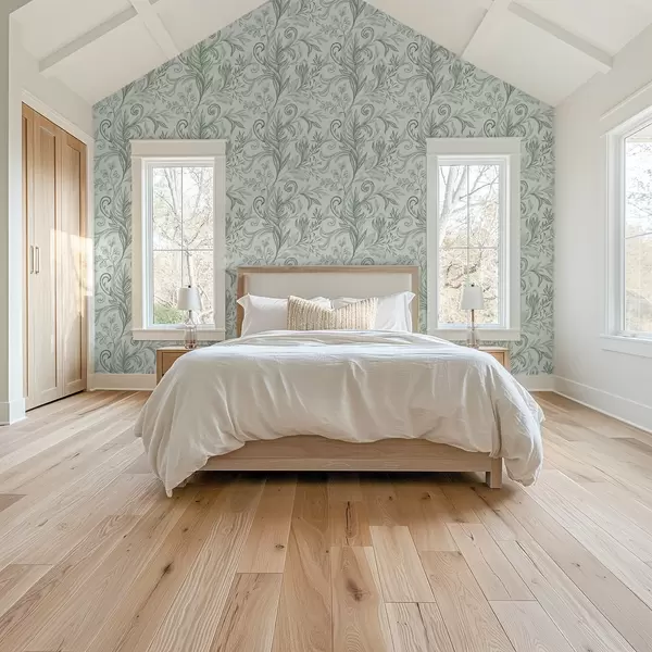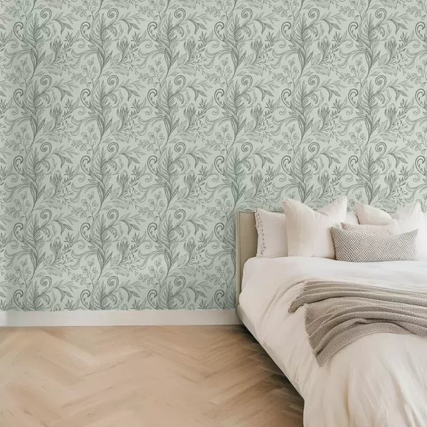 Tapet Frunze moi de mentă, ondulate, cu linii delicate de culoare gri-verde Nr. a00935v3