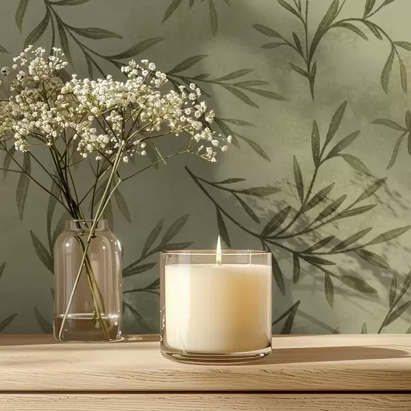 Tapet Ramuri de măslin pe un fundal texturat de culoare galben-verzui discret Nr. a00936