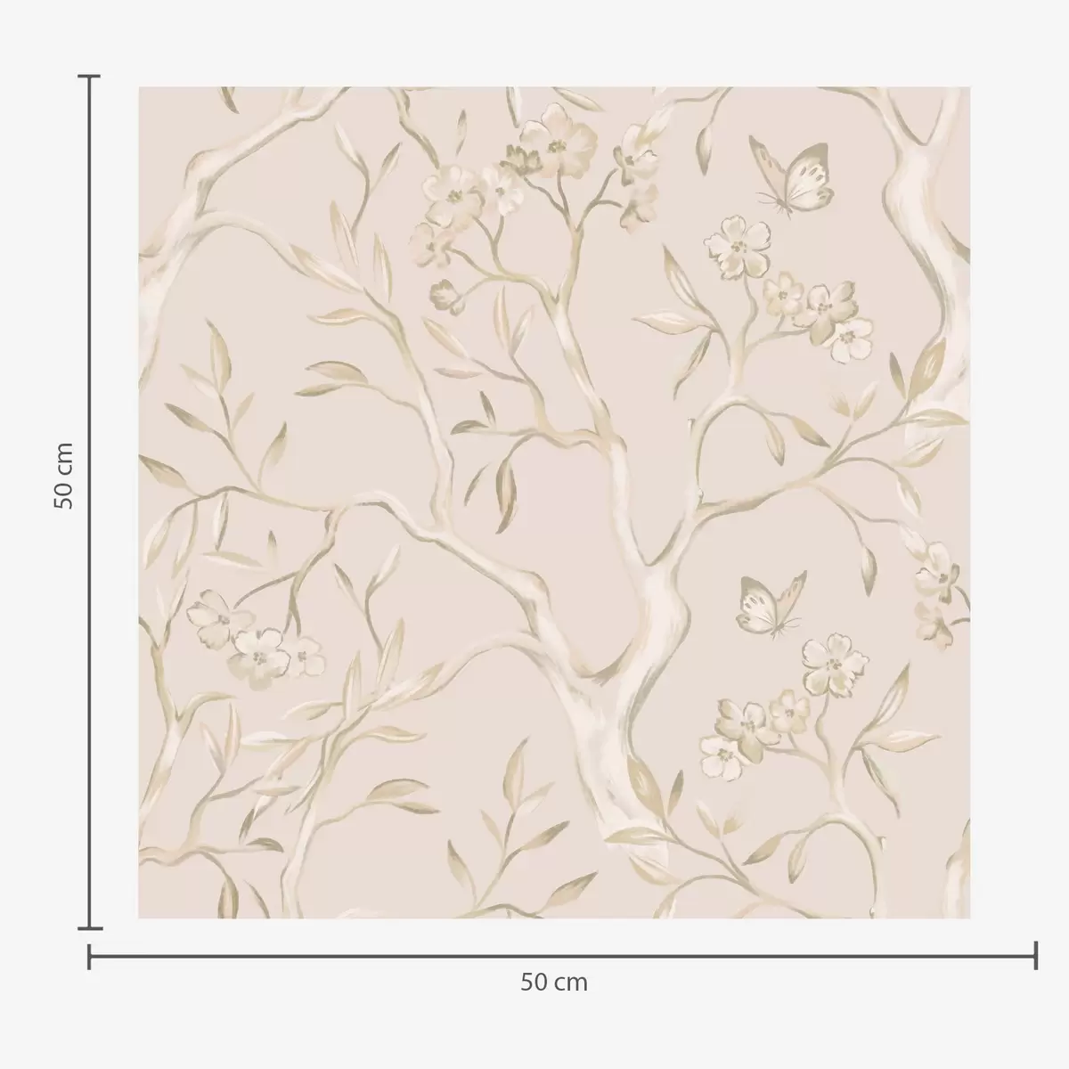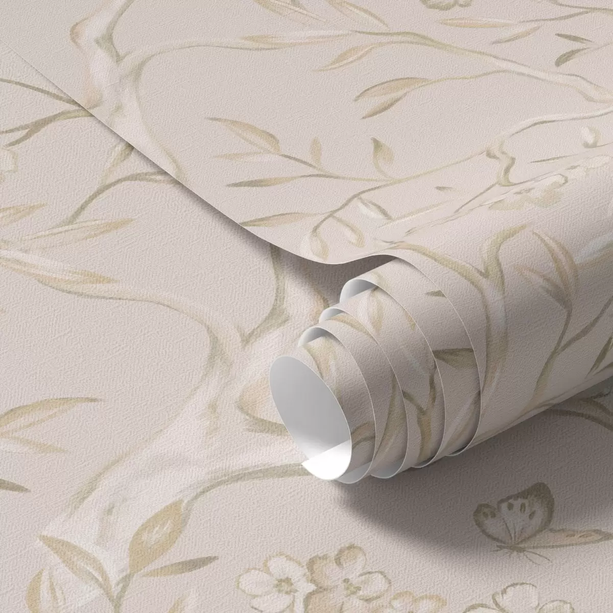Tapet Ramuri înflorite bej cu fluturi pe un fundal moale Nr. a00951v2