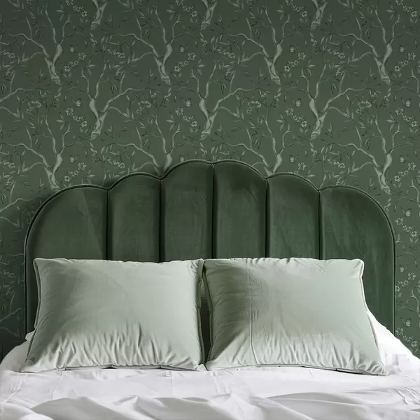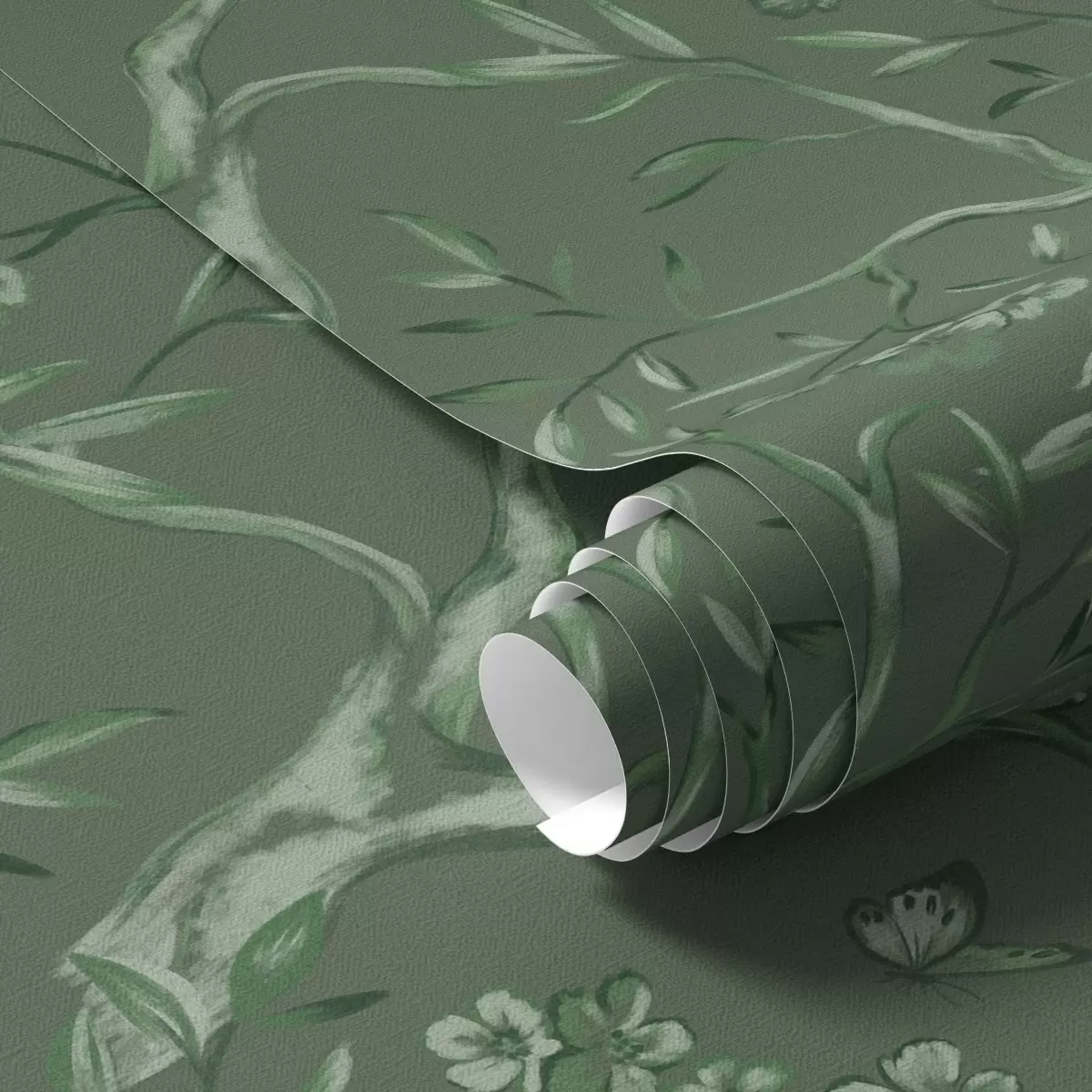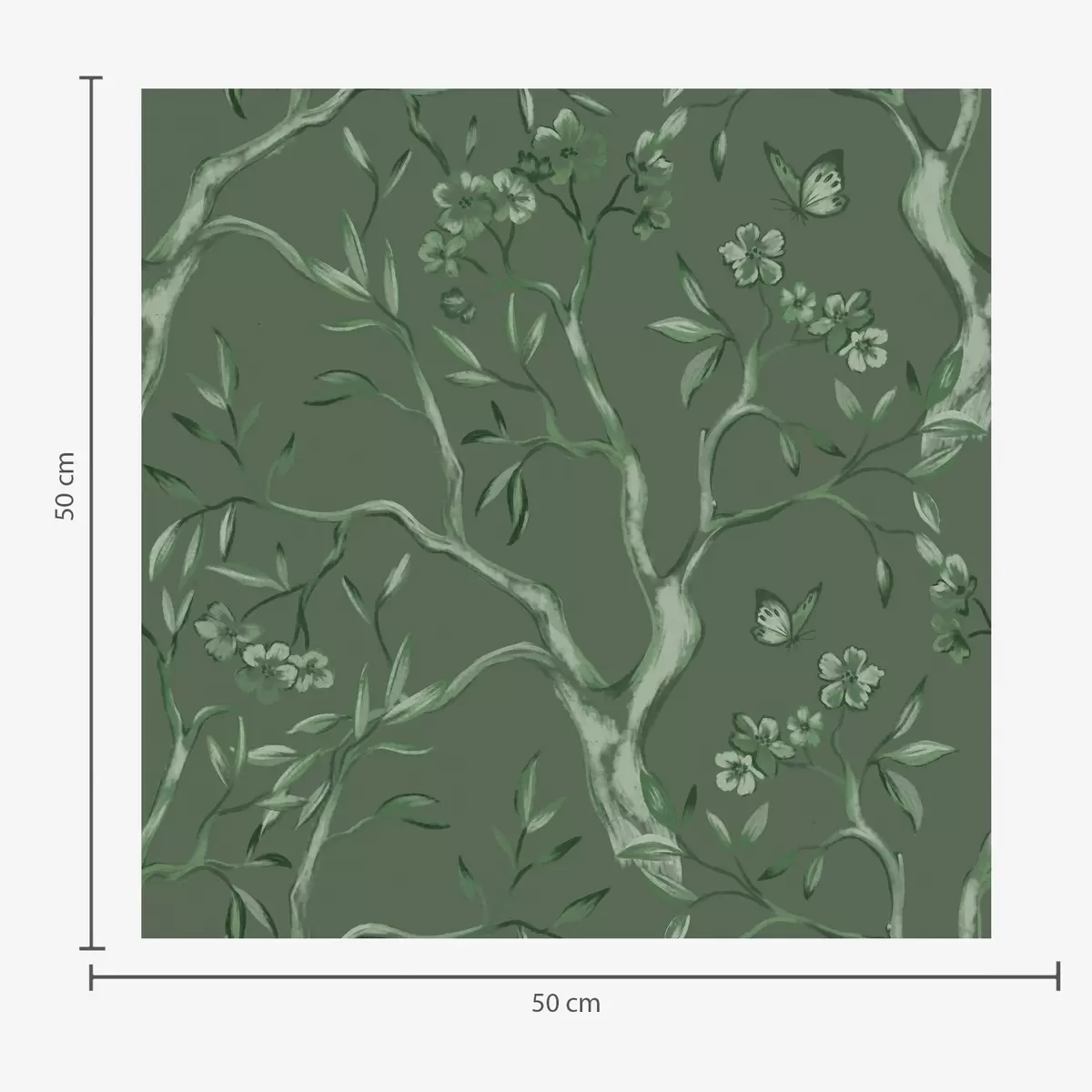 Tapet Ramuri înflorite verzi cu fluturi pe un fundal intens Nr. a00951v3
