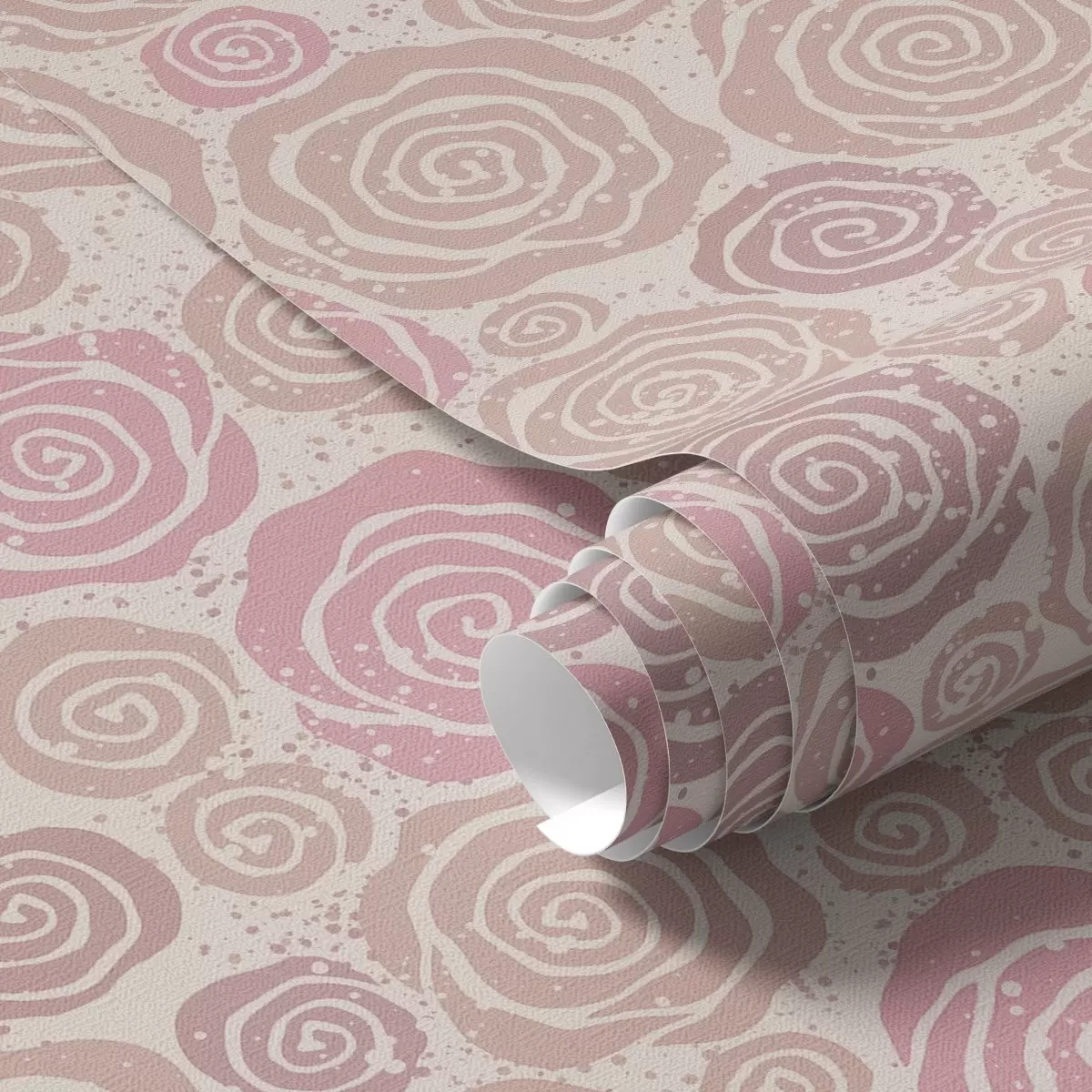 Tapet Trandafiri roz în spirală și stropi pe un fundal deschis Nr. a00955