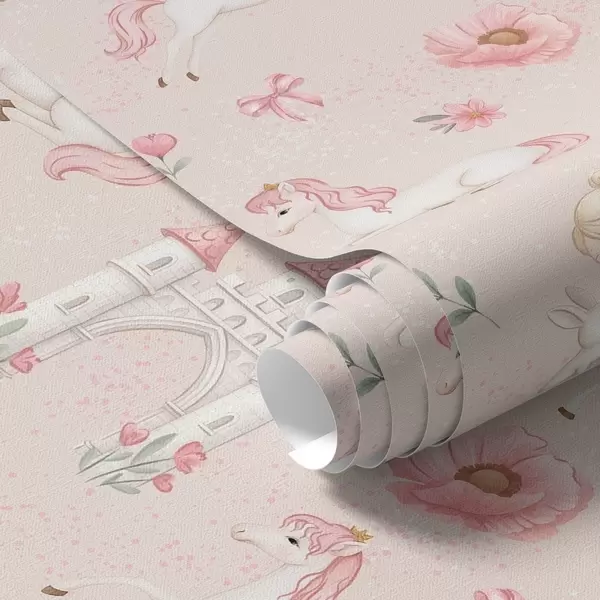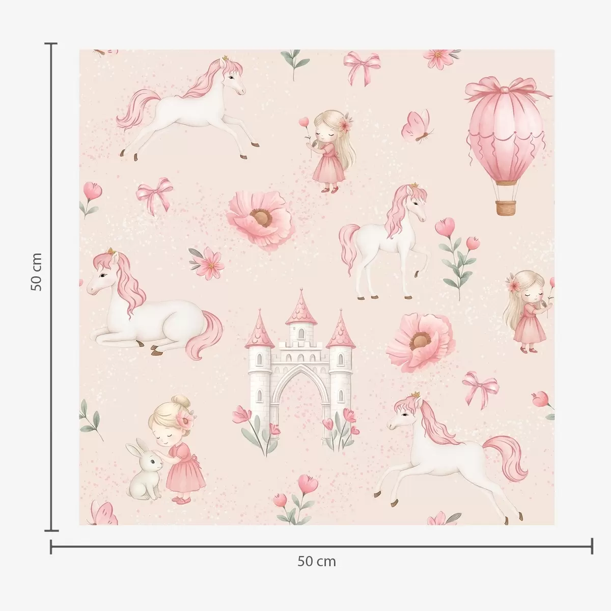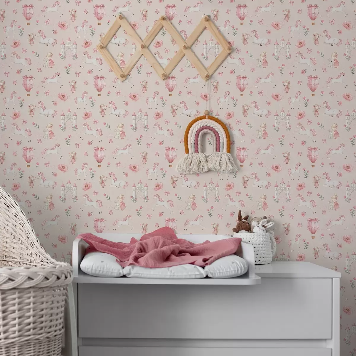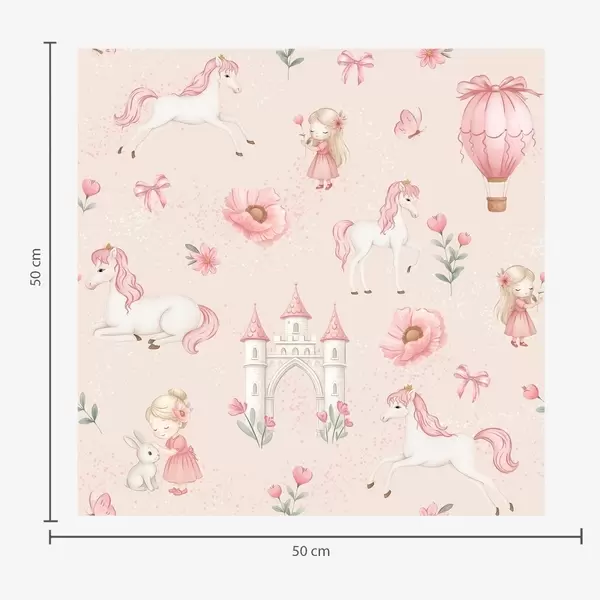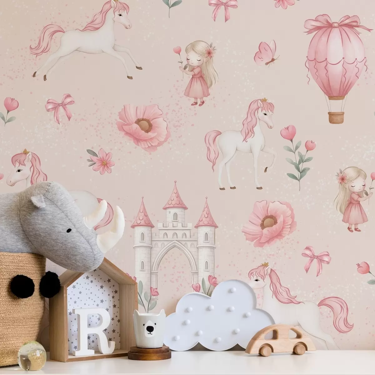 Tapet Unicorni roz, fetițe și un castel pe un fundal moale Nr. a00957