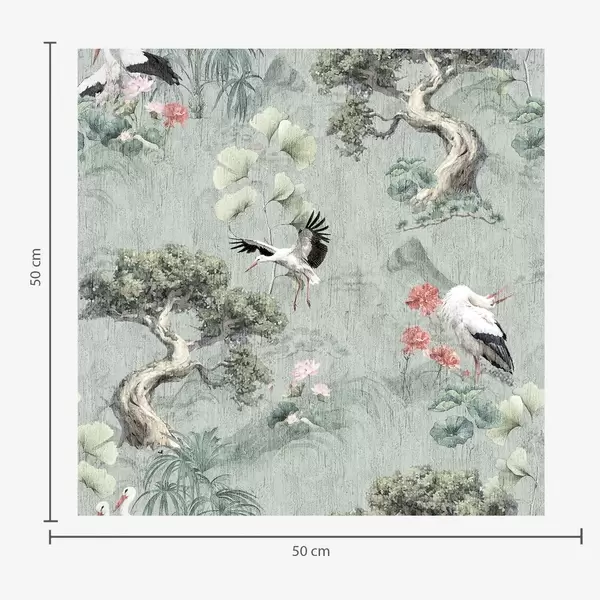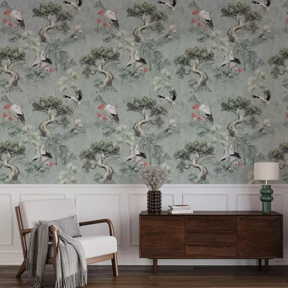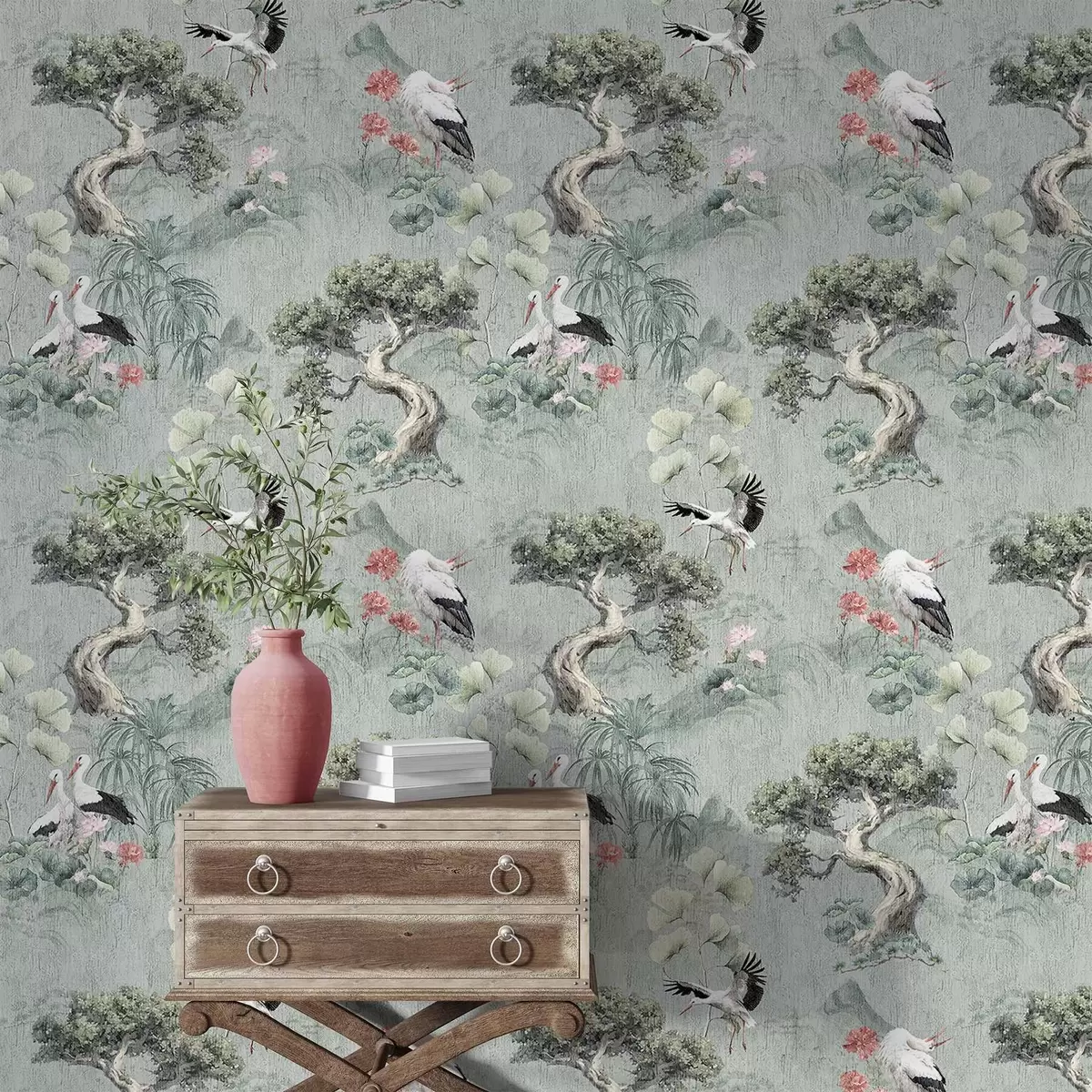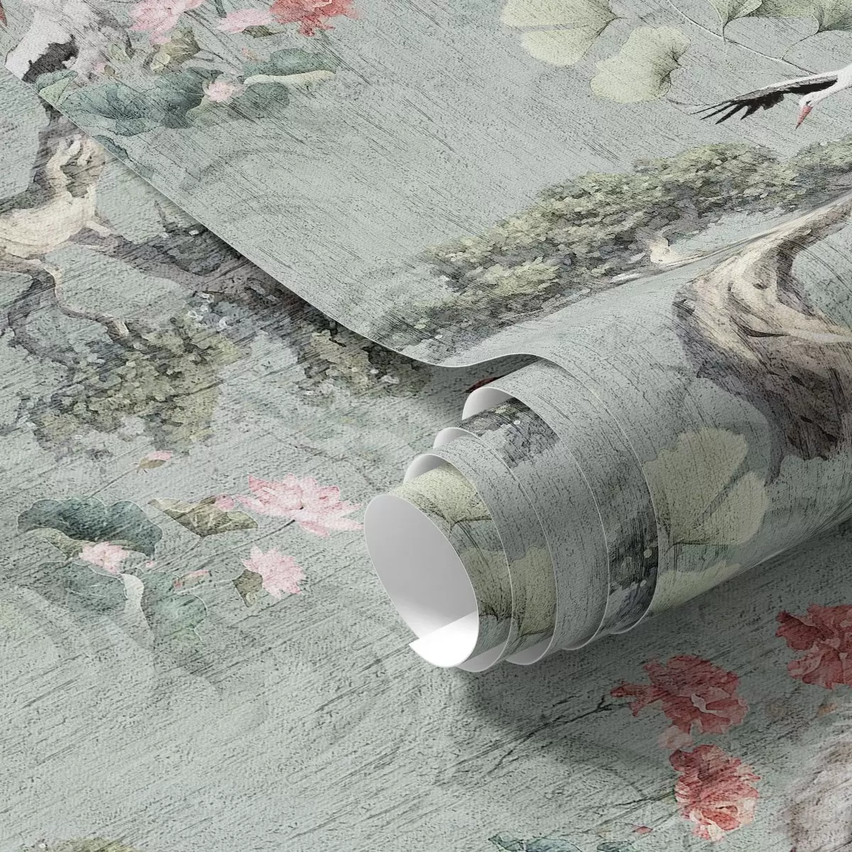 Tapet Macarale printre pini și lotuși pe un fundal verde calm Nr. a00962