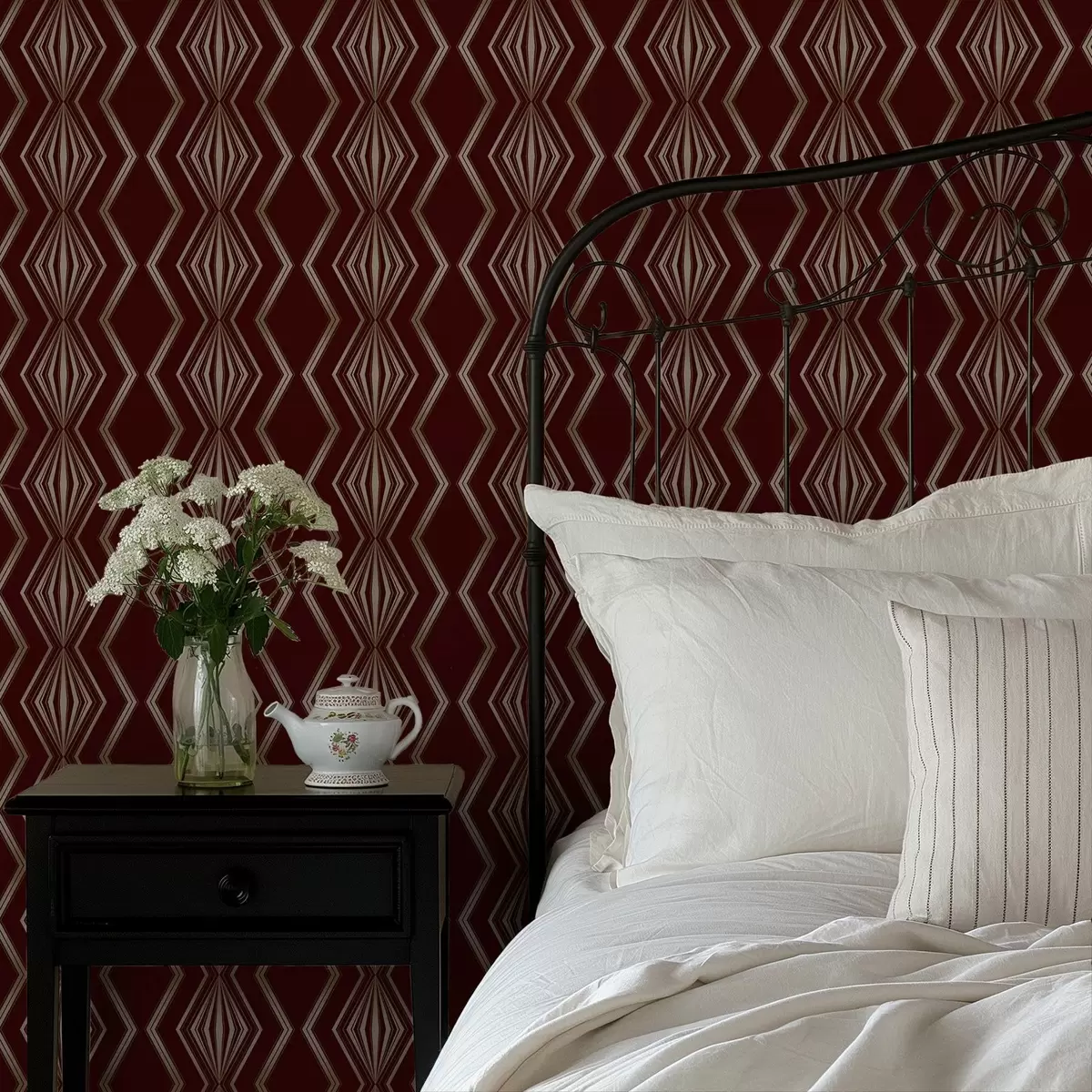 Tapet Fundal burgund cu romburi ritmice și linii în zigzag Nr. a00974