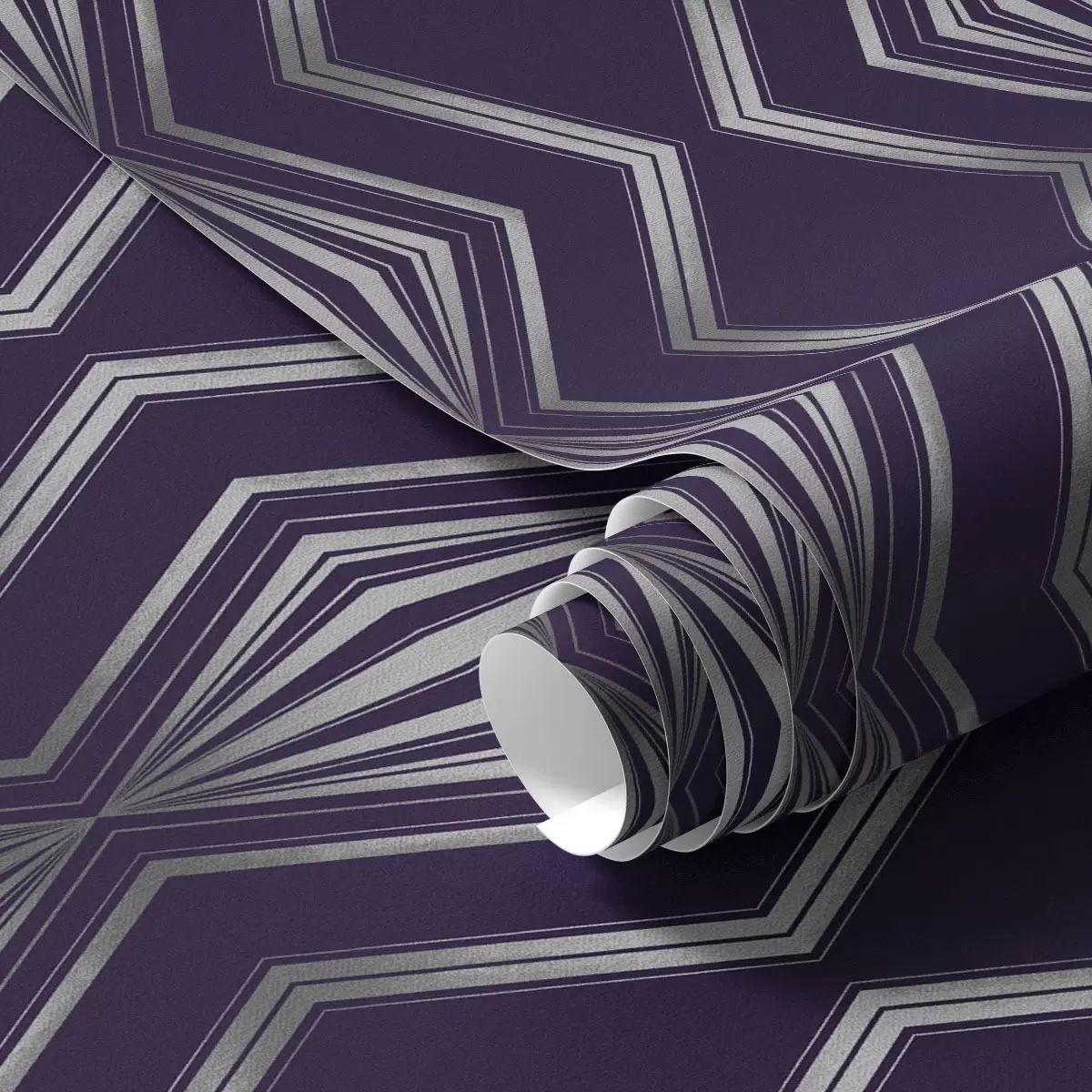 Tapet Fundal violet intens cu diamante și linii zigzagate gri Nr. a00974v1