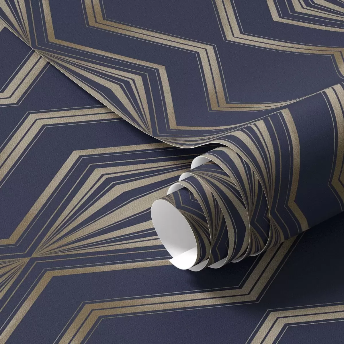 Tapet Fundal albastru închis cu romburi geometrice și zigzaguri Nr. a00974v2