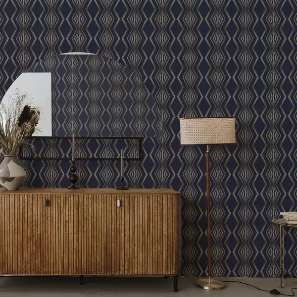 Tapet Fundal albastru închis cu romburi geometrice și zigzaguri Nr. a00974v2