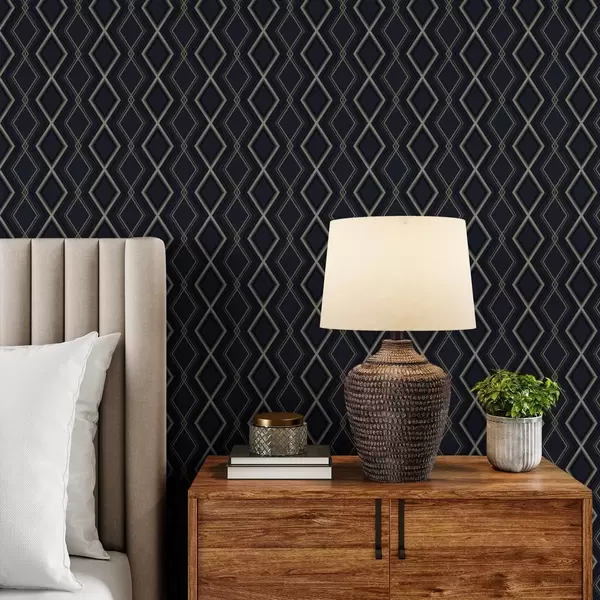 Tapet Rețea de romburi albastru închis cu linii subțiri deschise la culoare Nr. a00975
