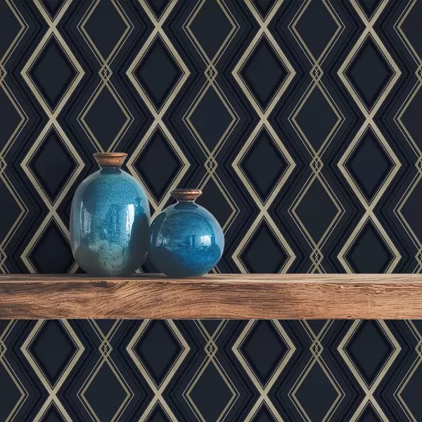 Tapet Rețea de romburi albastru închis cu linii subțiri deschise la culoare Nr. a00975