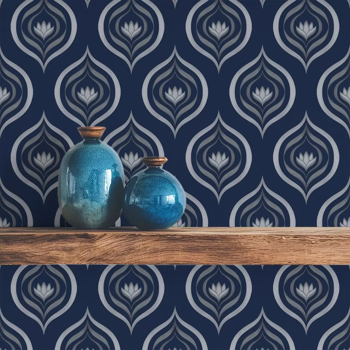 Tapet Motivele contrastante ale picăturilor cu o floare pe un fundal albastru închis Nr. a00977v1