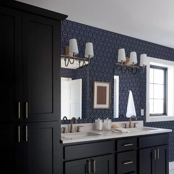 Tapet Motivele contrastante ale picăturilor cu o floare pe un fundal albastru închis Nr. a00977v1
