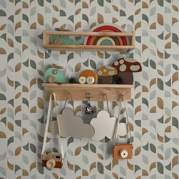 Tapet Semicercuri abstracte și frunze în verde și teracotă Nr. a00985