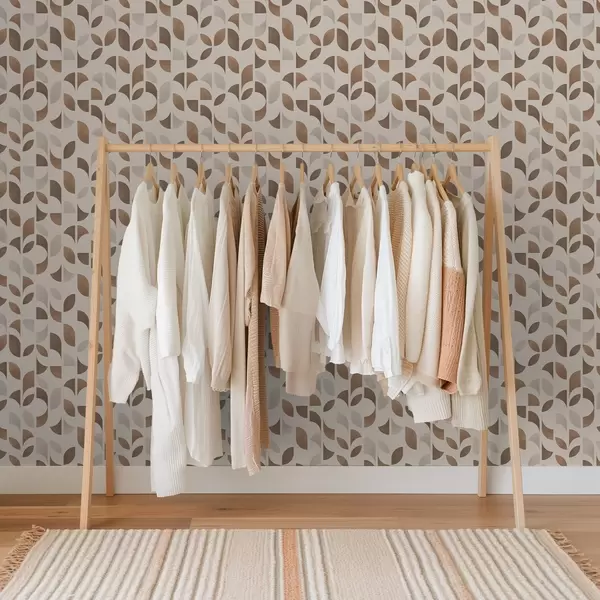 Tapet Ritmul semicercurilor și frunzelor în tonuri calde de caramel maro Nr. a00986v1