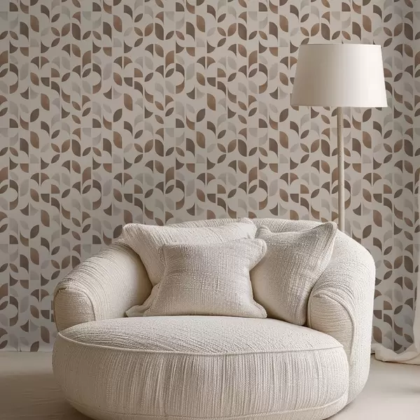 Tapet Ritmul semicercurilor și frunzelor în tonuri calde de caramel maro Nr. a00986v1