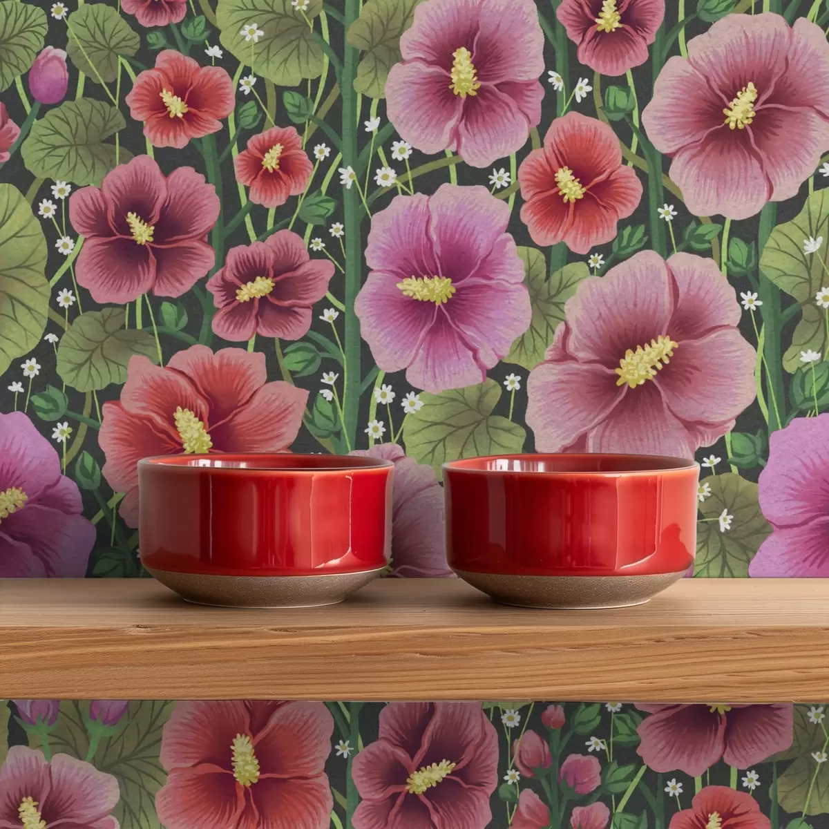 Tapet Flori de hibiscus strălucitoare și verdeață pe un fundal întunecat Nr. a00993v2