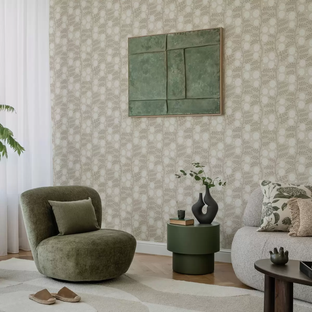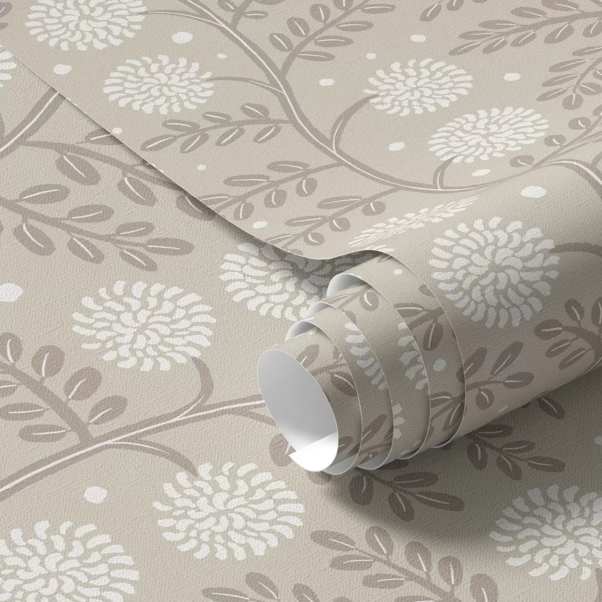 Tapet Tulpini bej cu flori albe pufoase și puncte moi Nr. a00997