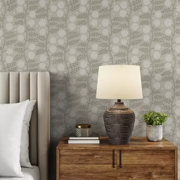 Tapet Tulpini bej cu flori albe pufoase și puncte moi Nr. a00997