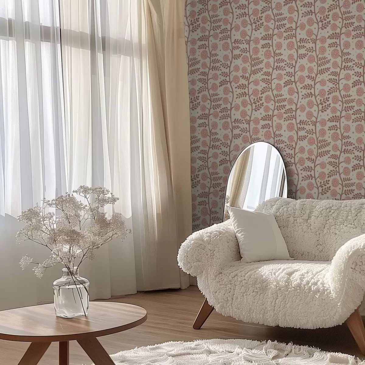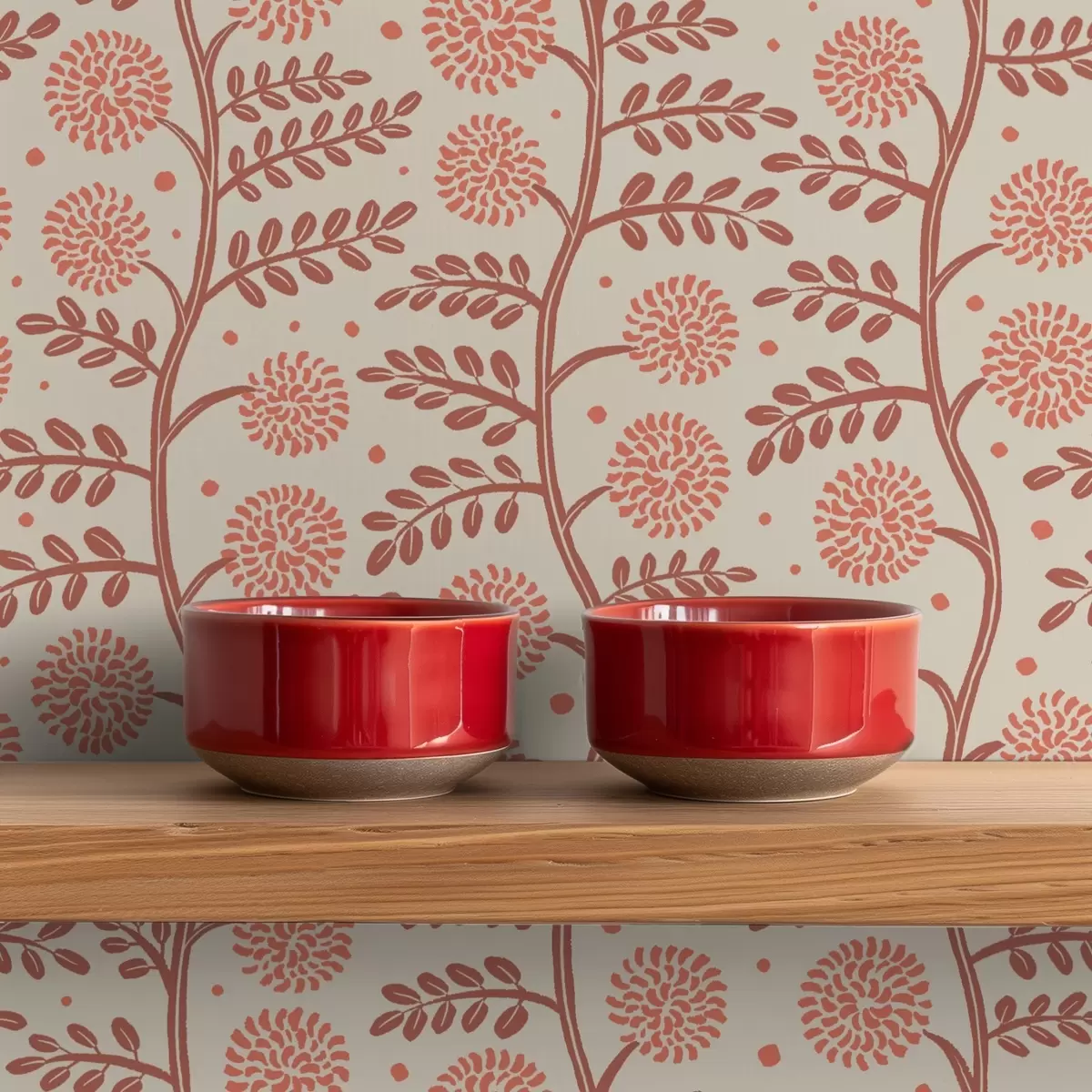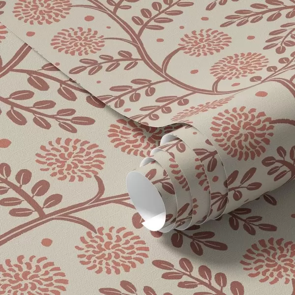Tapet Tulpini din teracotă cu flori pufoase de culoarea coralului pe un fundal crem Nr. a00997v1
