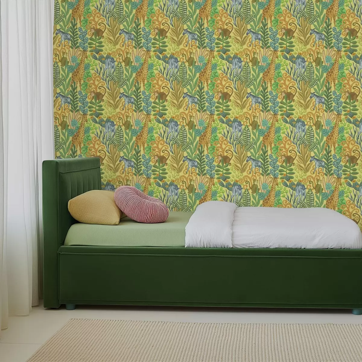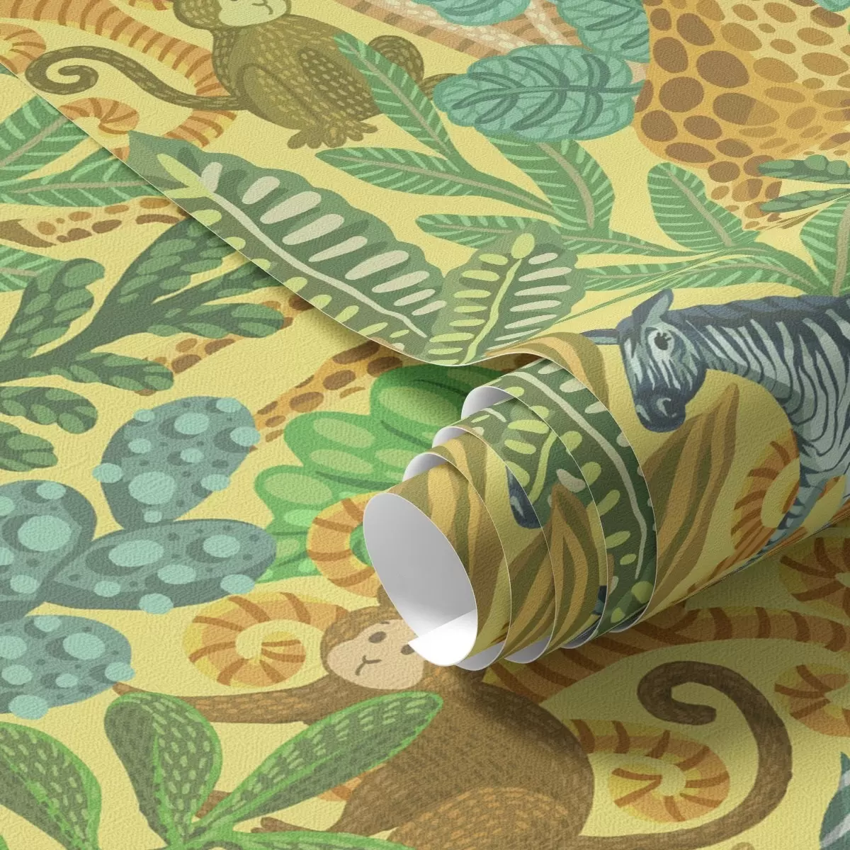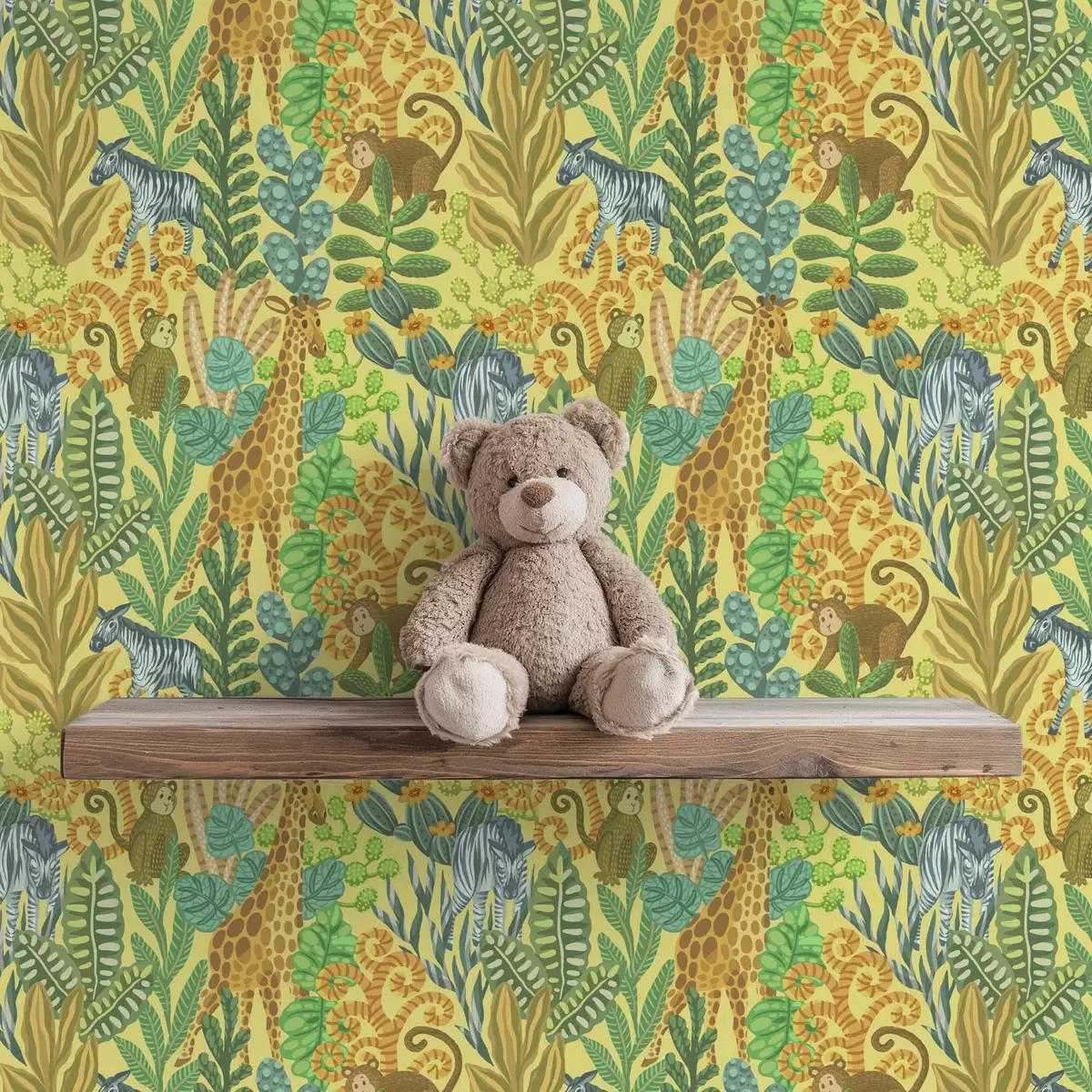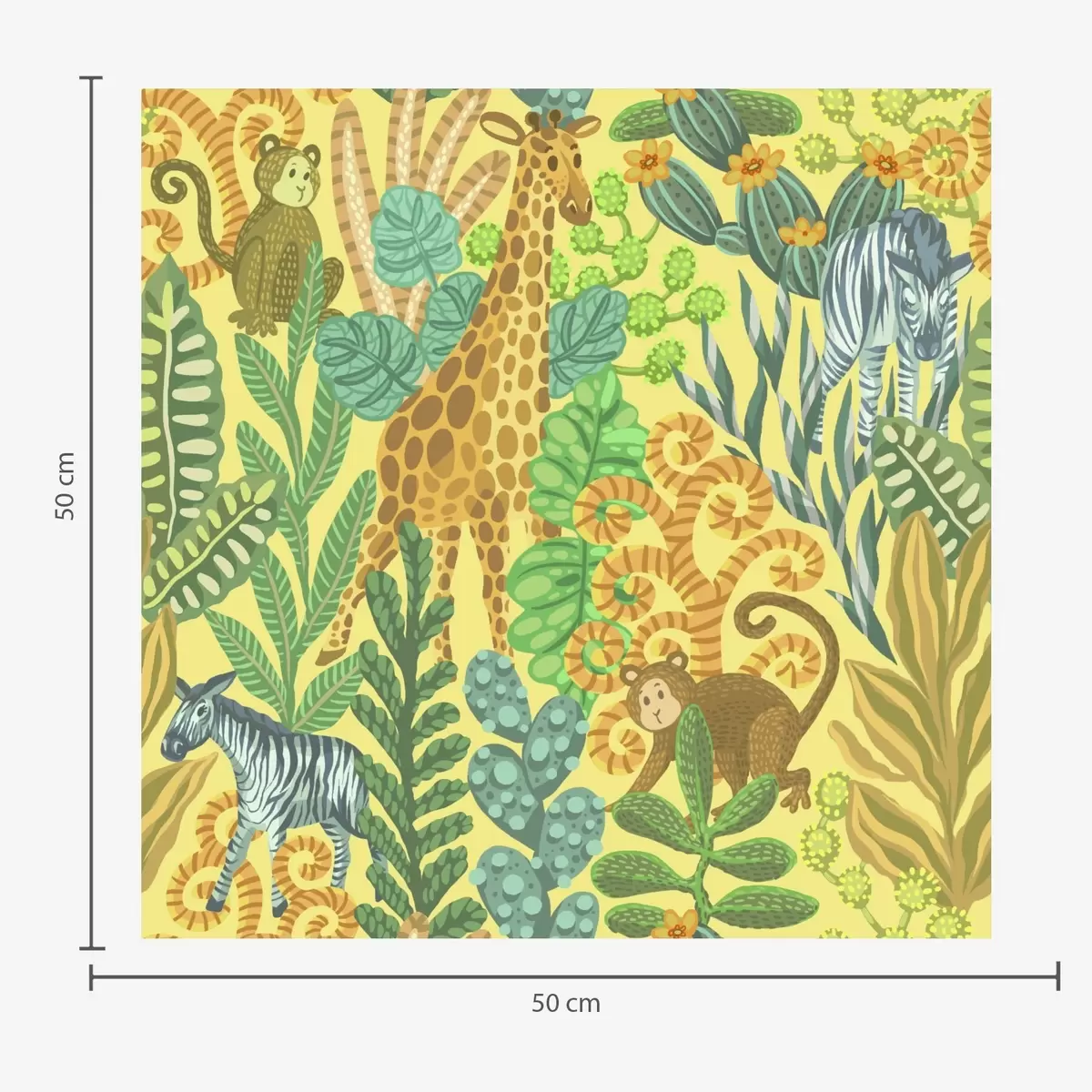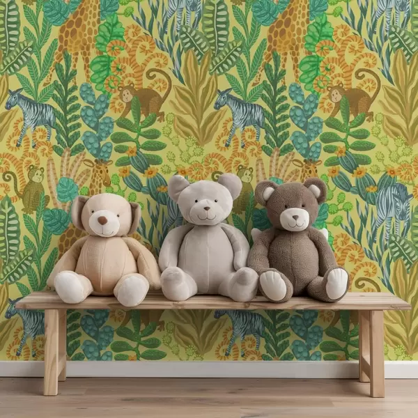 Tapet Girafă, zebră și maimuță într-o savană galbenă strălucitoare Nr. a01000v1